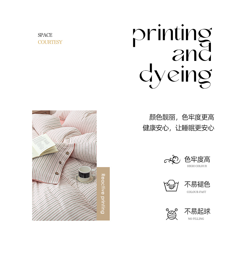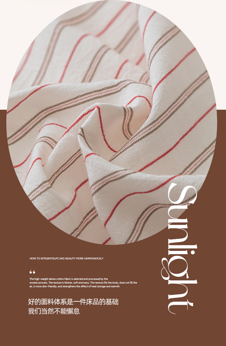商品名称:简宜家居(朝初家纺) 2025新款11月色织小提花简约条纹水洗棉纽扣四件套 粉灰条