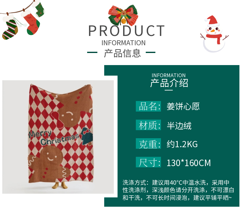 商品名称:(总)暖绵绵家纺 2025新款半边绒毛毯-姜饼心愿