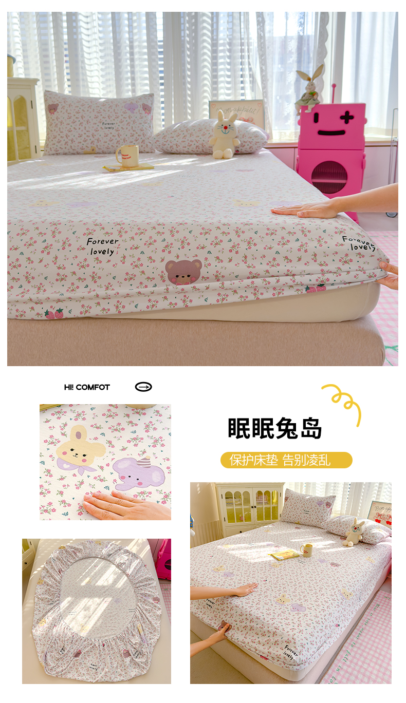 宏源家纺2024新款A类高克重超柔水洗云朵棉单床笠 眠眠兔岛