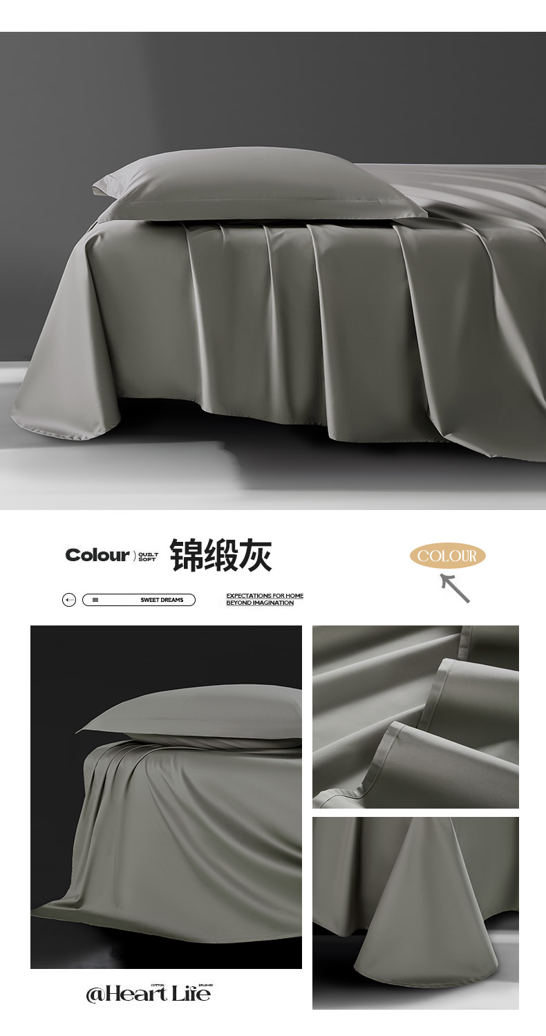 轩和家居 2024新款70S长绒棉单床单 锦缎灰