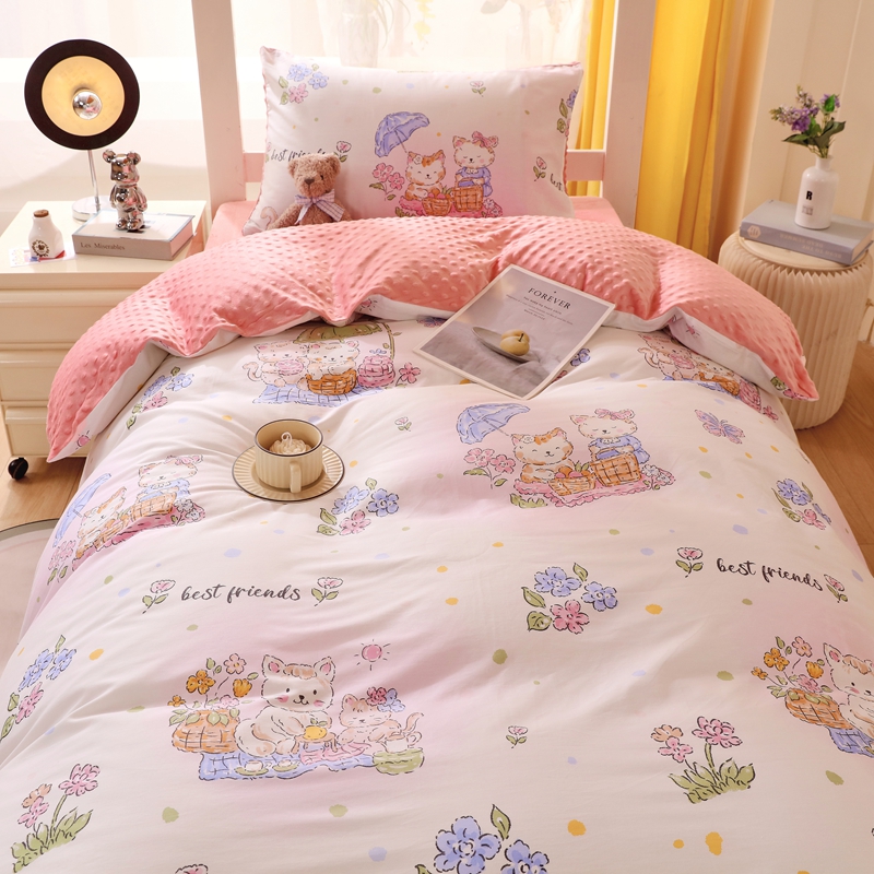 当前位置: 91家纺网 > 商品网购 > 床品套件 > 三件套 > 金鑫汇家纺 2024新款棉加豆豆绒学生三件套 棉加豆豆绒-喵喵日记