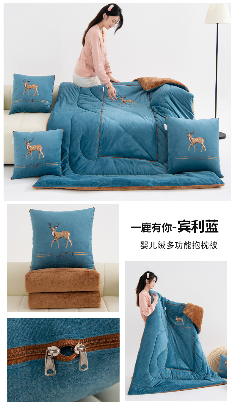 翰轩家居 2024新款婴儿绒多功能抱枕被-一鹿有你 一鹿有你-宾利蓝