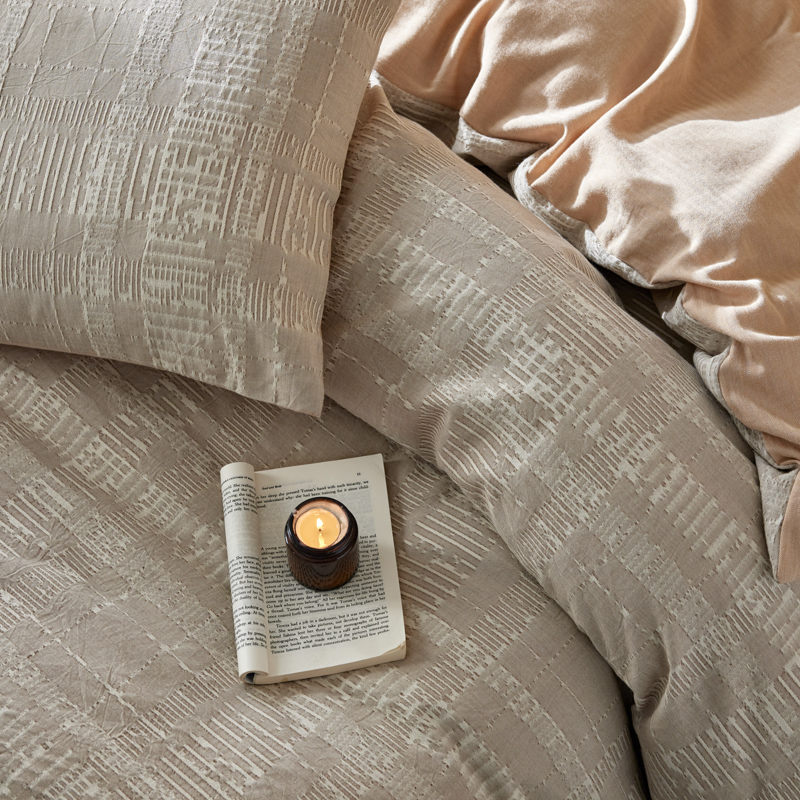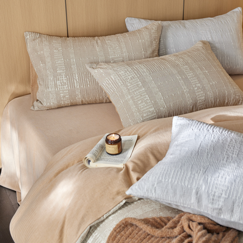 (总)简家居 2025新款亲肤舒适棉麻床盖三件套,棉麻提花