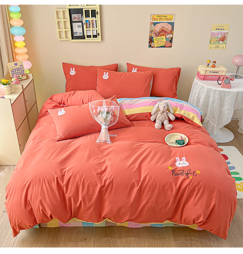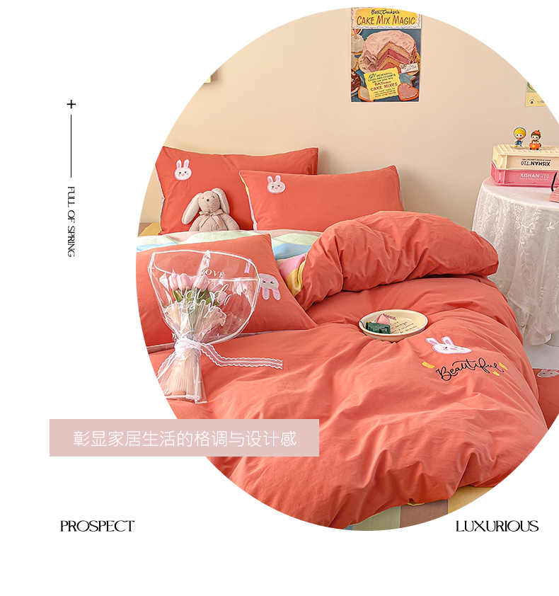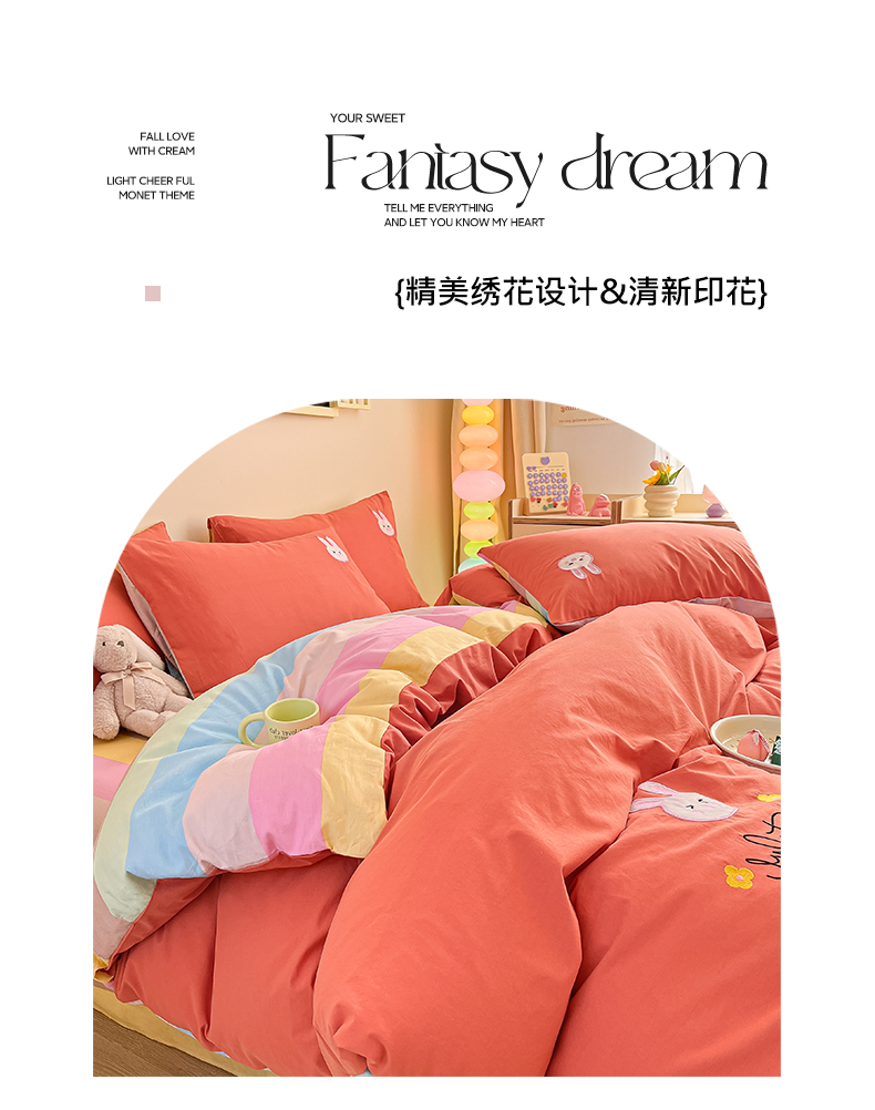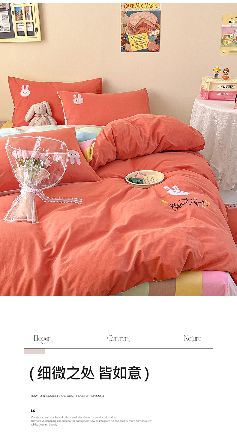 雅居纺家纺 2025新款全棉水洗棉绣花四件套 阿兔