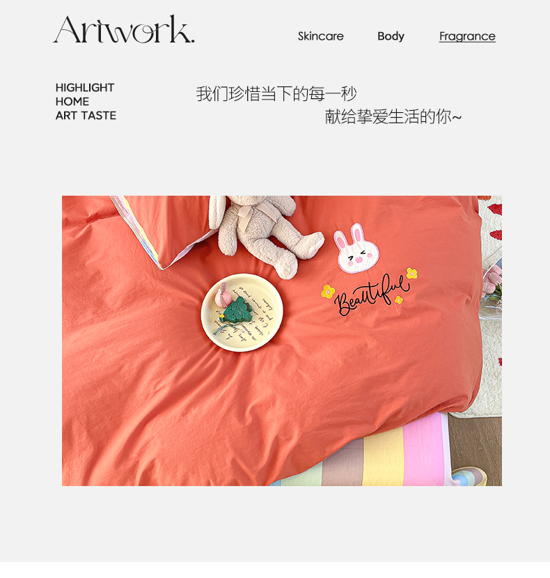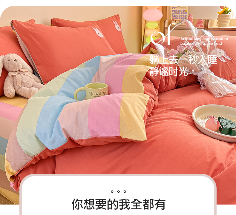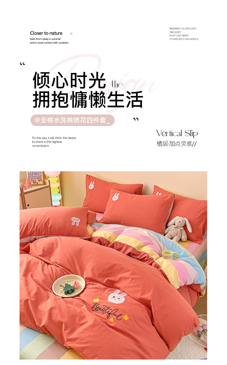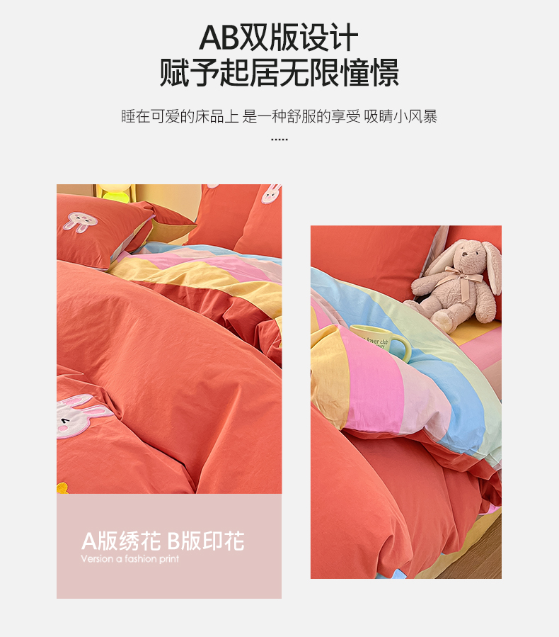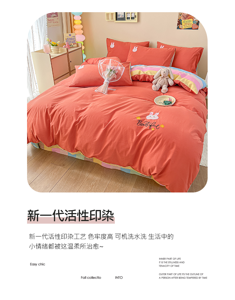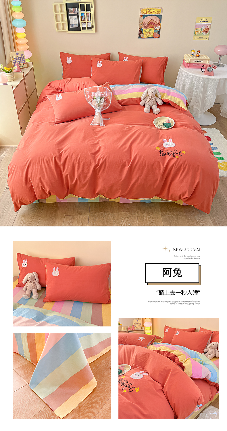 商品名称:雅居纺家纺 2025新款全棉水洗棉绣花四件套 阿兔
