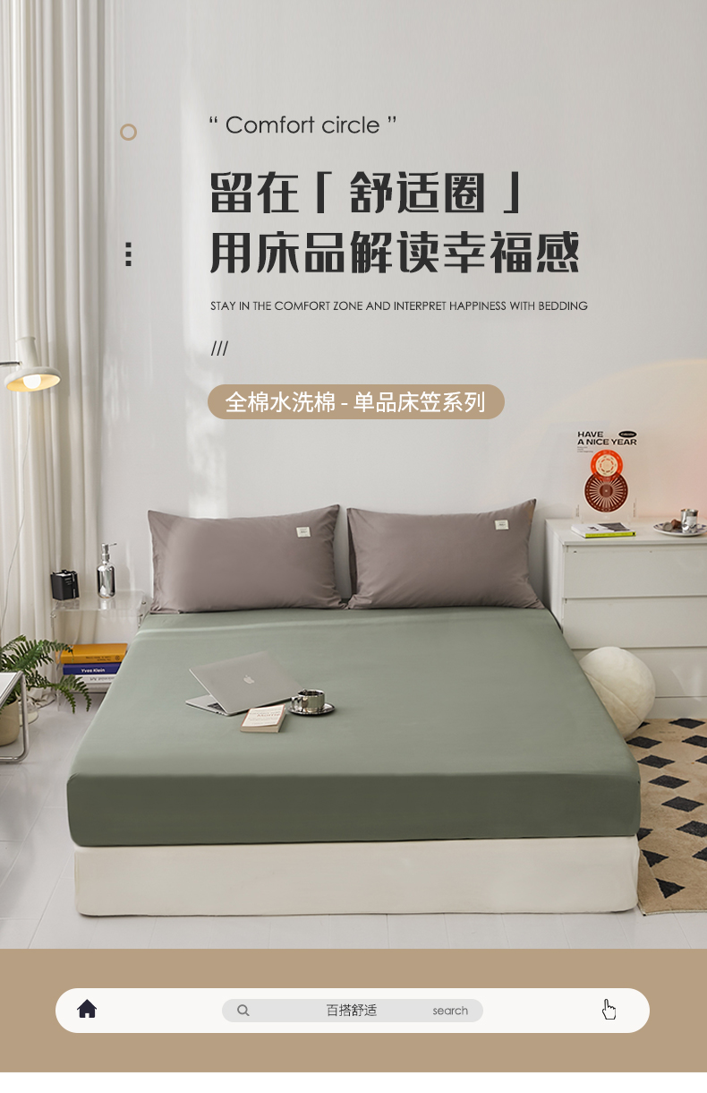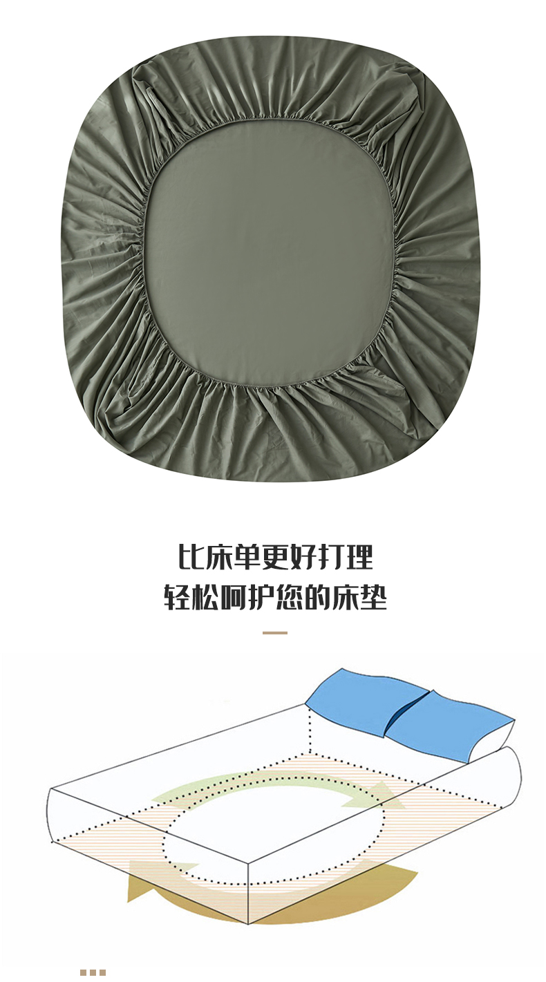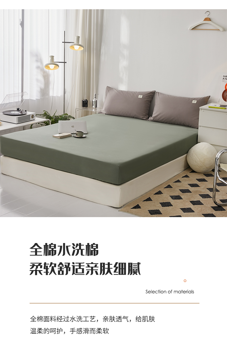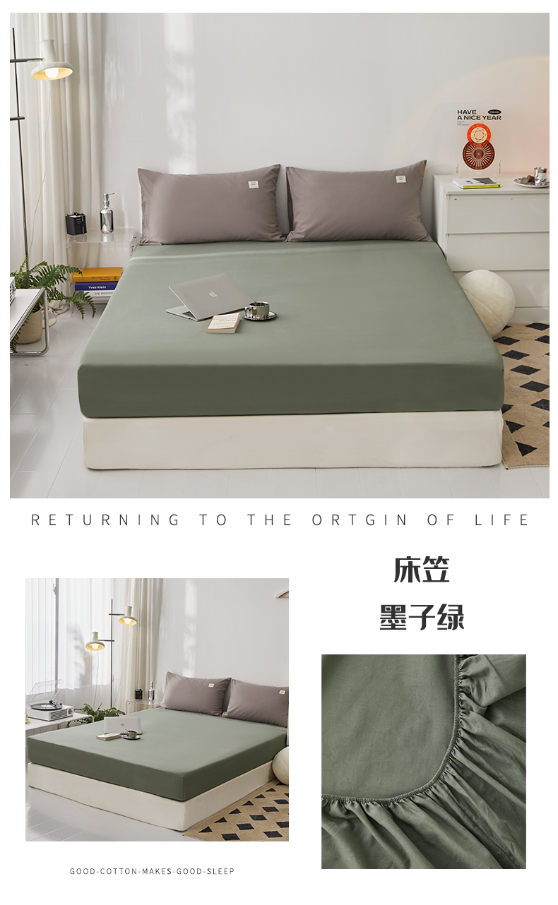 商品名称:雅居纺家纺 2025新款全棉素色水洗棉单床笠 墨子绿