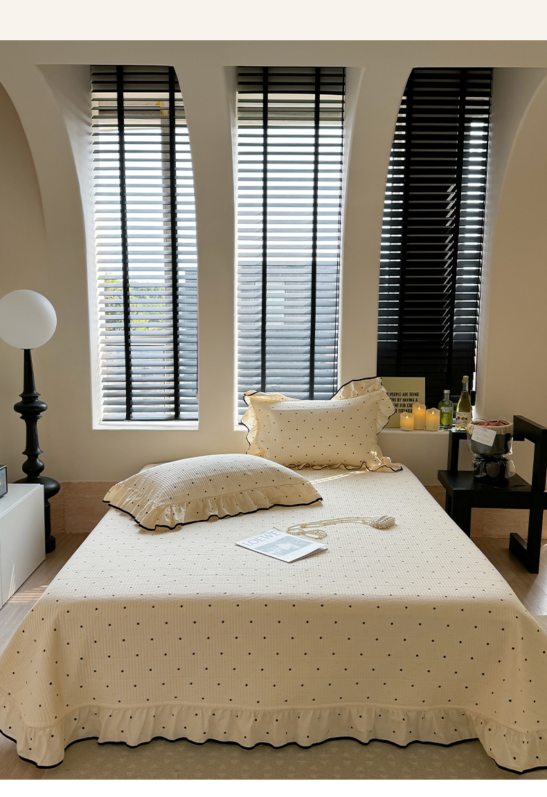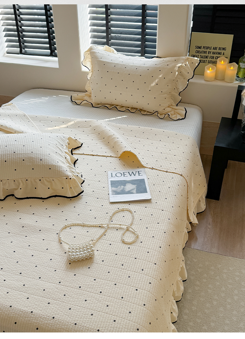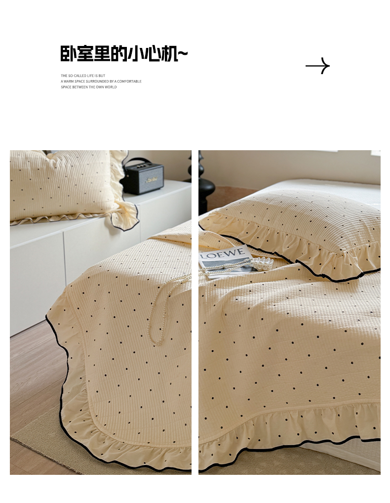 商品名称:琳可家居 2025新款韩版花边双面全棉床盖三件套-波点 波点-烛光黄
