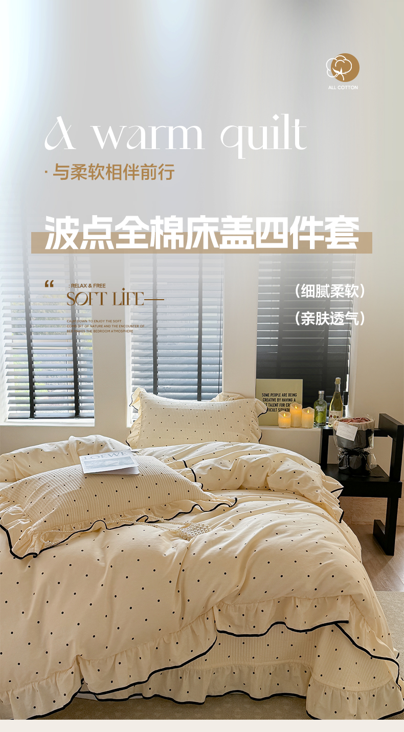 (总)琳可家居 2026新款60S长绒棉花边床盖A类双面全棉高温水洗-蝶恋系列,蝶恋-暖白,蝶恋-卡其,蝶恋-雾粉,组合