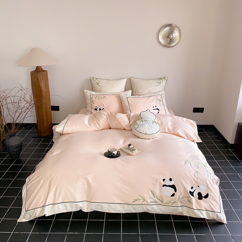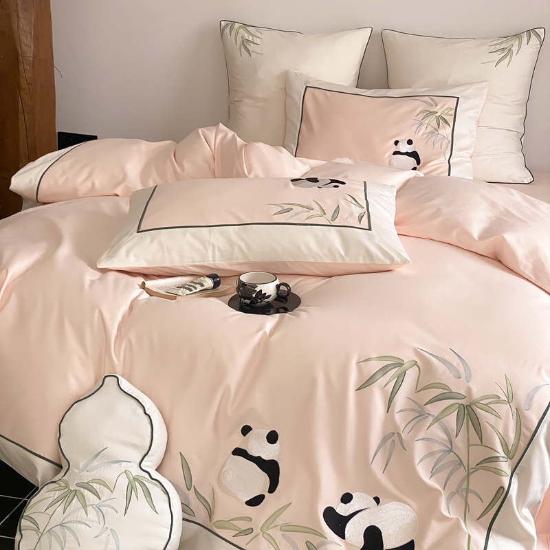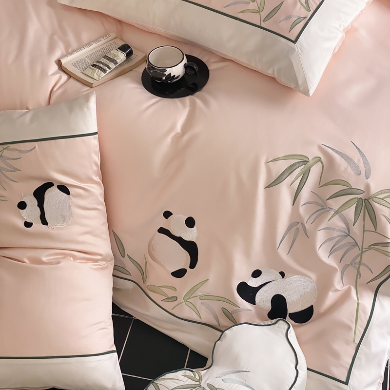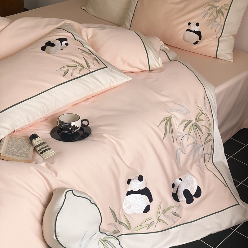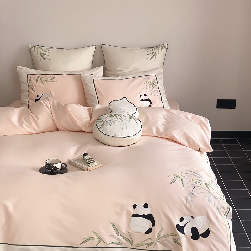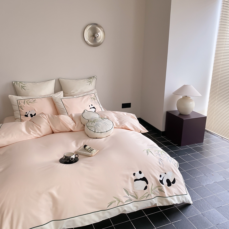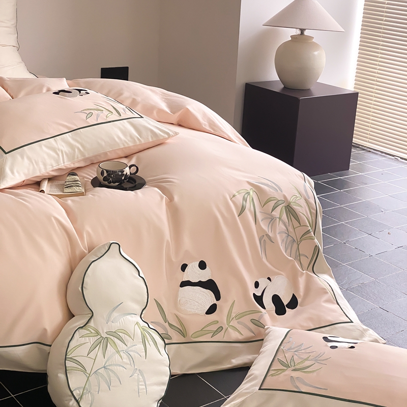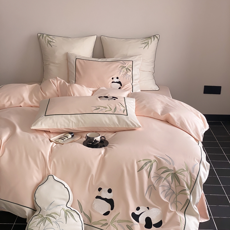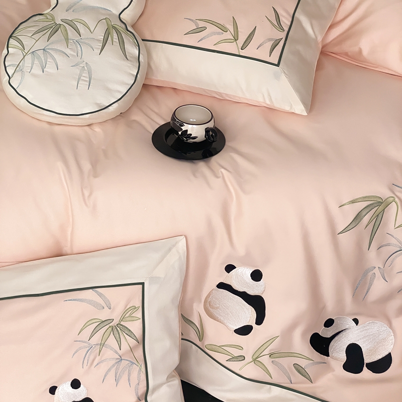 MIU缪家居 2025新款100支全棉磨毛四件套-熊猫与竹 熊猫与竹-嫩粉