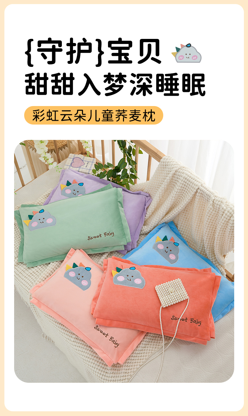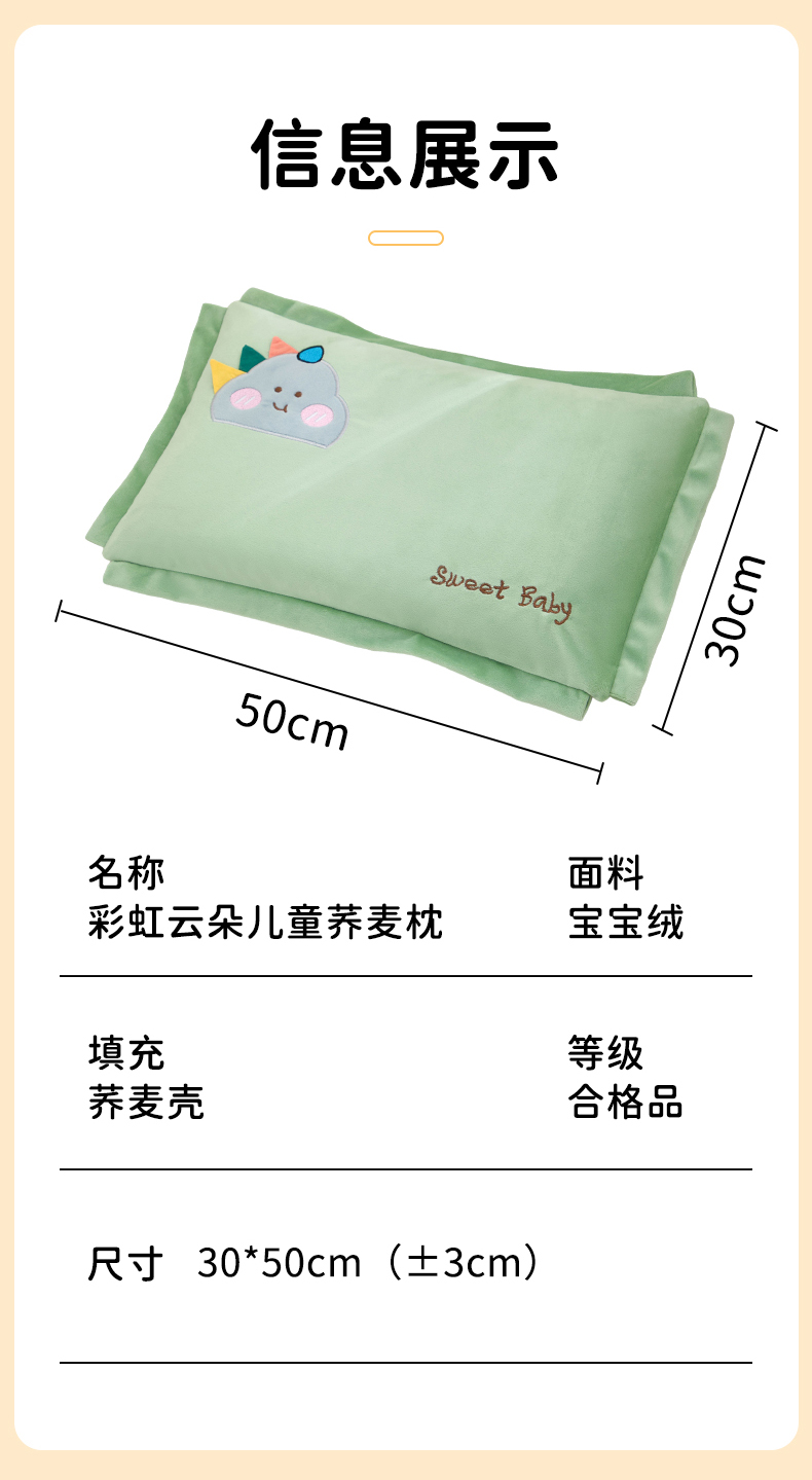 商品名称:(总)织布人 2025新款荞麦枕宝宝绒彩虹云朵儿童荞麦枕学生枕头+荞麦枕芯30*50cm