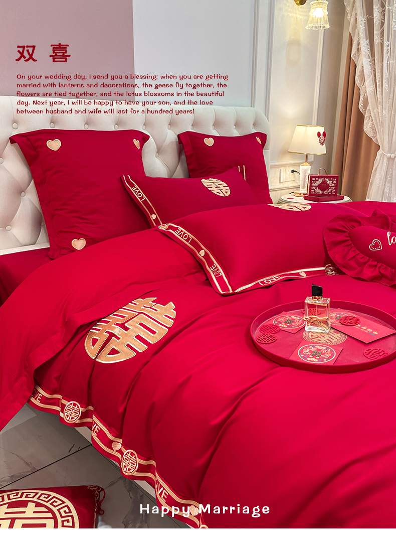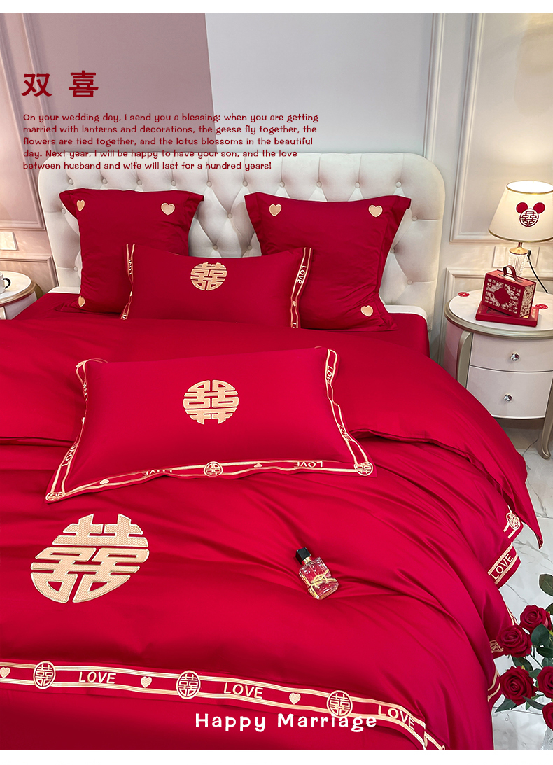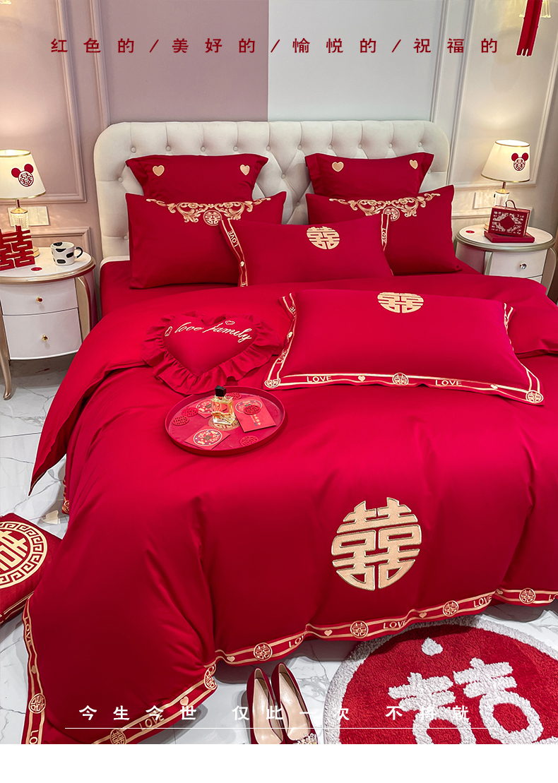 当前位置: 91家纺网 > 商品网购 > 床品套件 > 四件套 > 婚庆四件套 > 东方合美(原:皇家传奇) 2023新款亲肤舒适时尚婚庆四件套系列 双喜