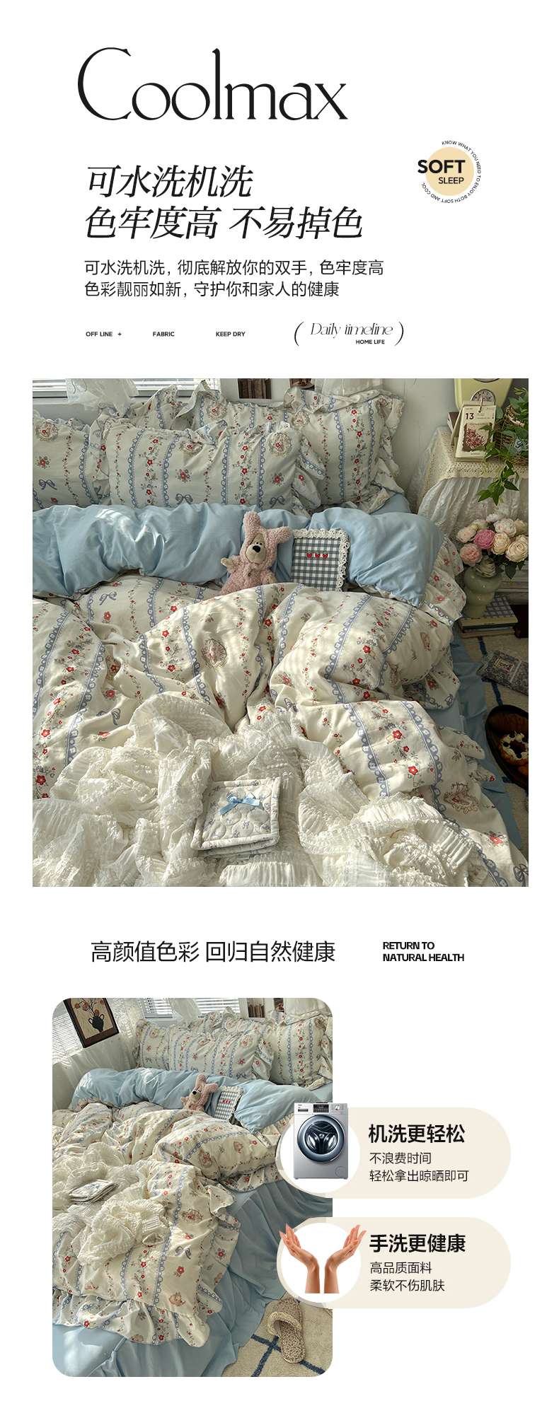 当前位置: 91家纺网 > 商品网购 > 床品套件 > 四件套 > 水洗棉四件套 > 原素 2025新款韩系小花卉花边水洗棉四件套 茉冉