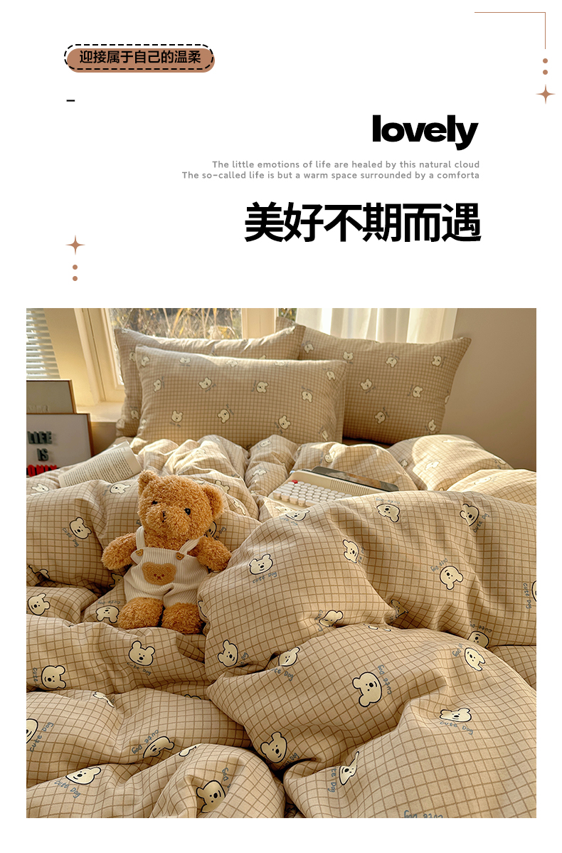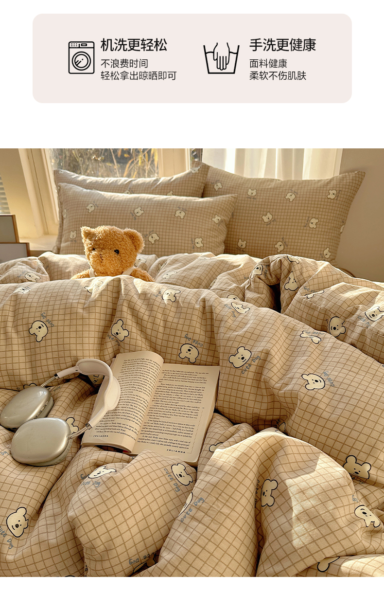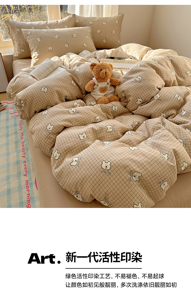 (总)雅居纺家纺 2026新款全棉小清新印花四件套,HI小狗,暴富,草莓蓝花,粉色熊熊,红红火火,简笔画小兔,蓝条花朵兔,绿色小兔,森林乐园,绅士快乐狗,贪睡猫猫,贪玩家族,贪玩小兔兔,祥瑞,小黑猫咪,幸福花朵,幸福兔-蓝,熊熊小汽车,紫色千鸟格
