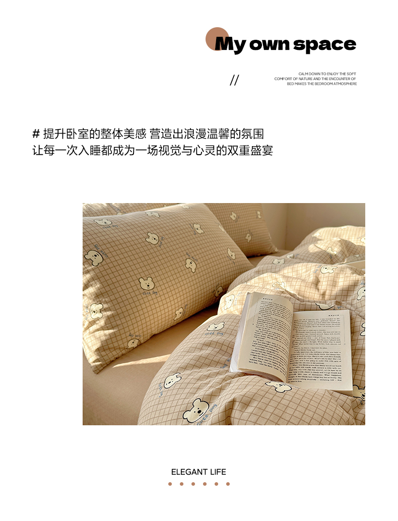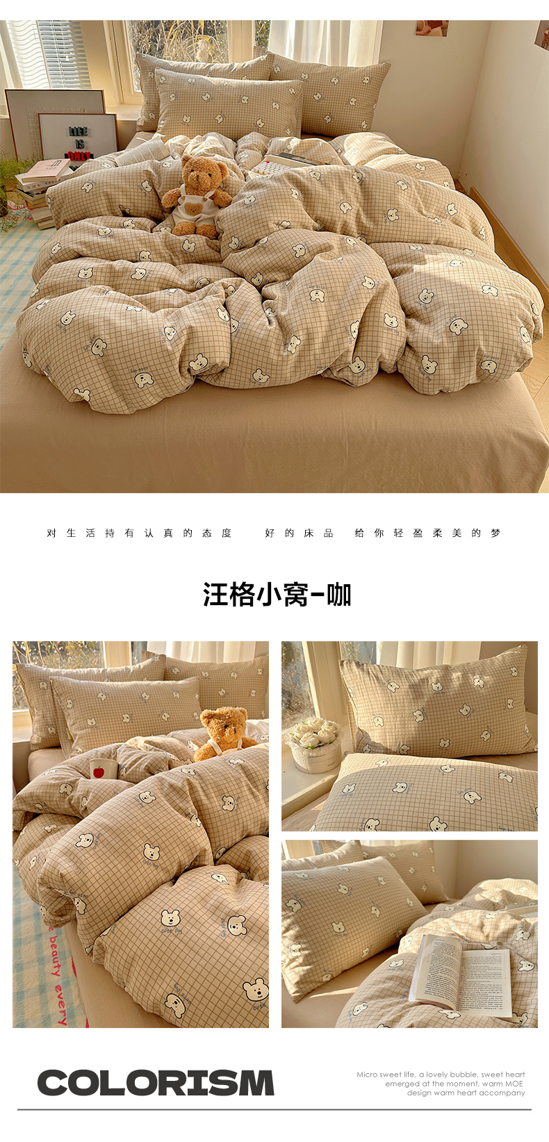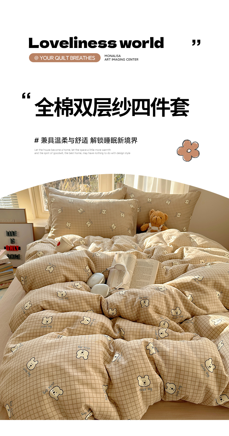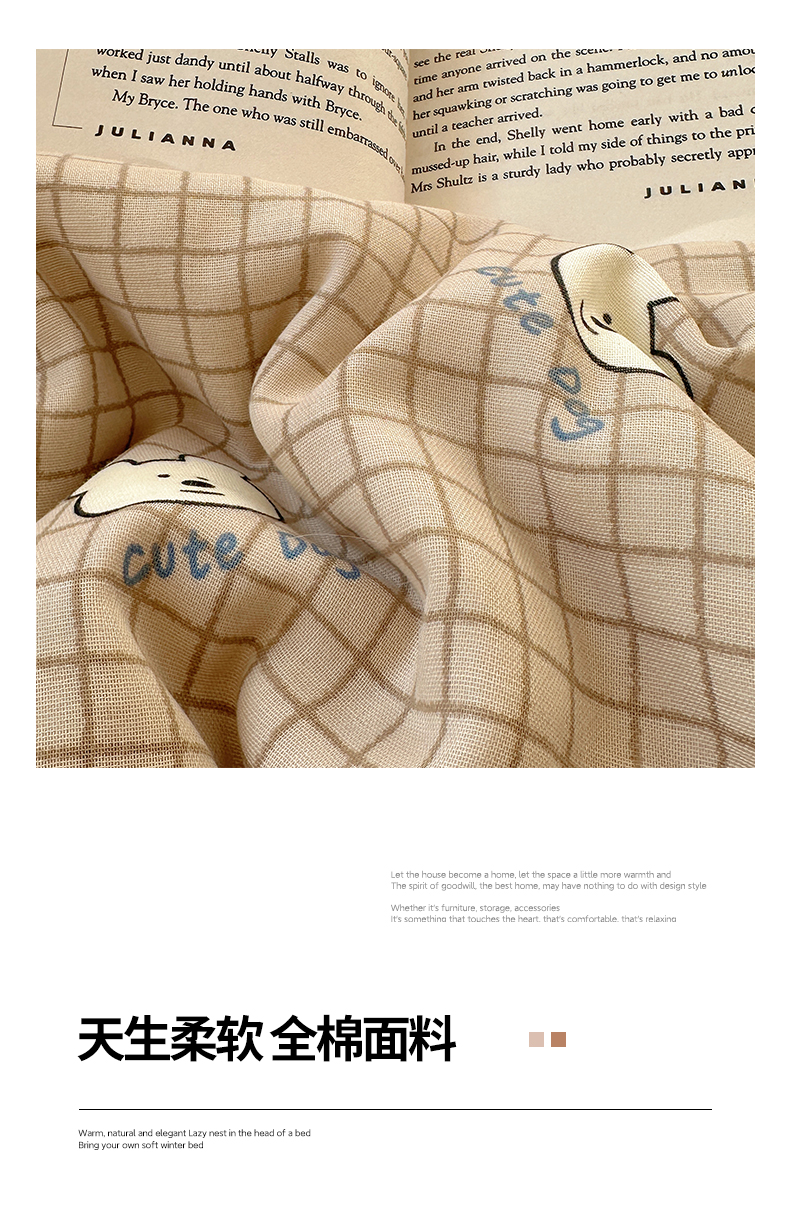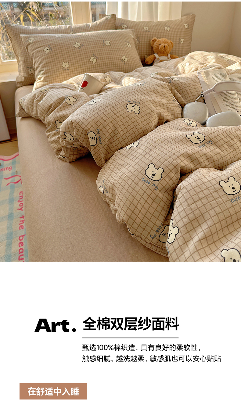 商品名称:雅居纺家纺 2025新款全棉双层纱四件套 汪格小窝-咖