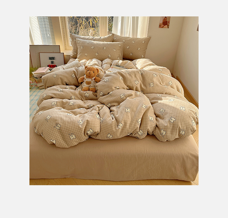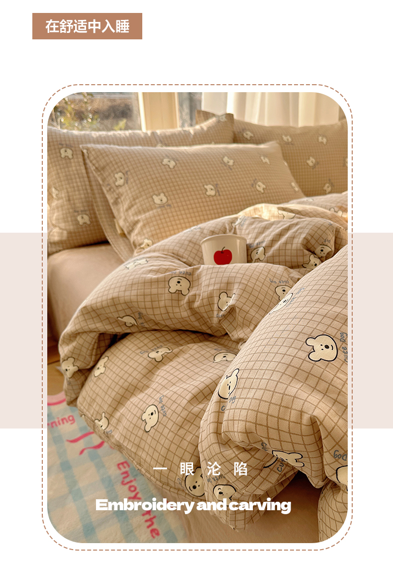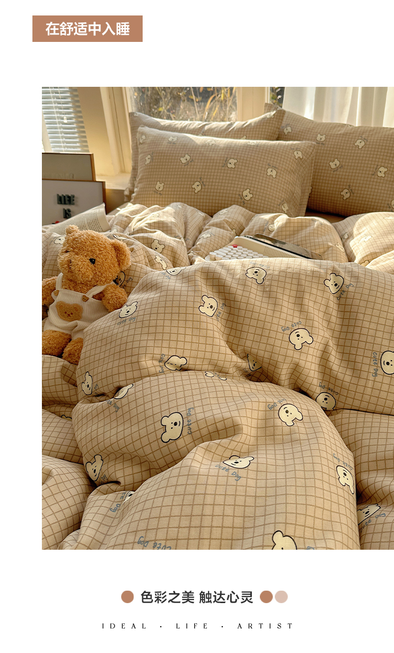 雅居纺家纺 2025新款全棉双层纱四件套 汪格小窝-咖