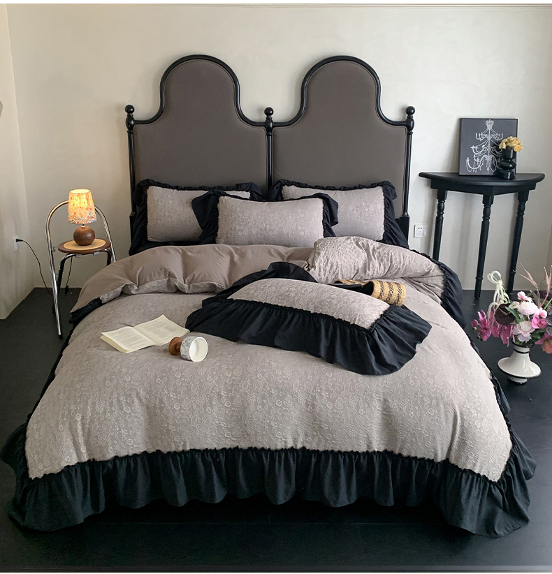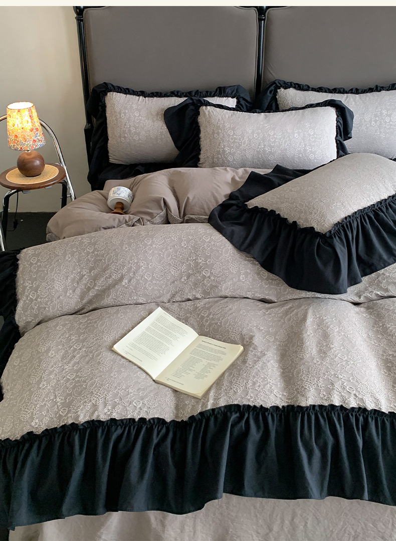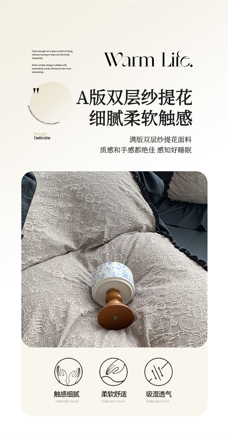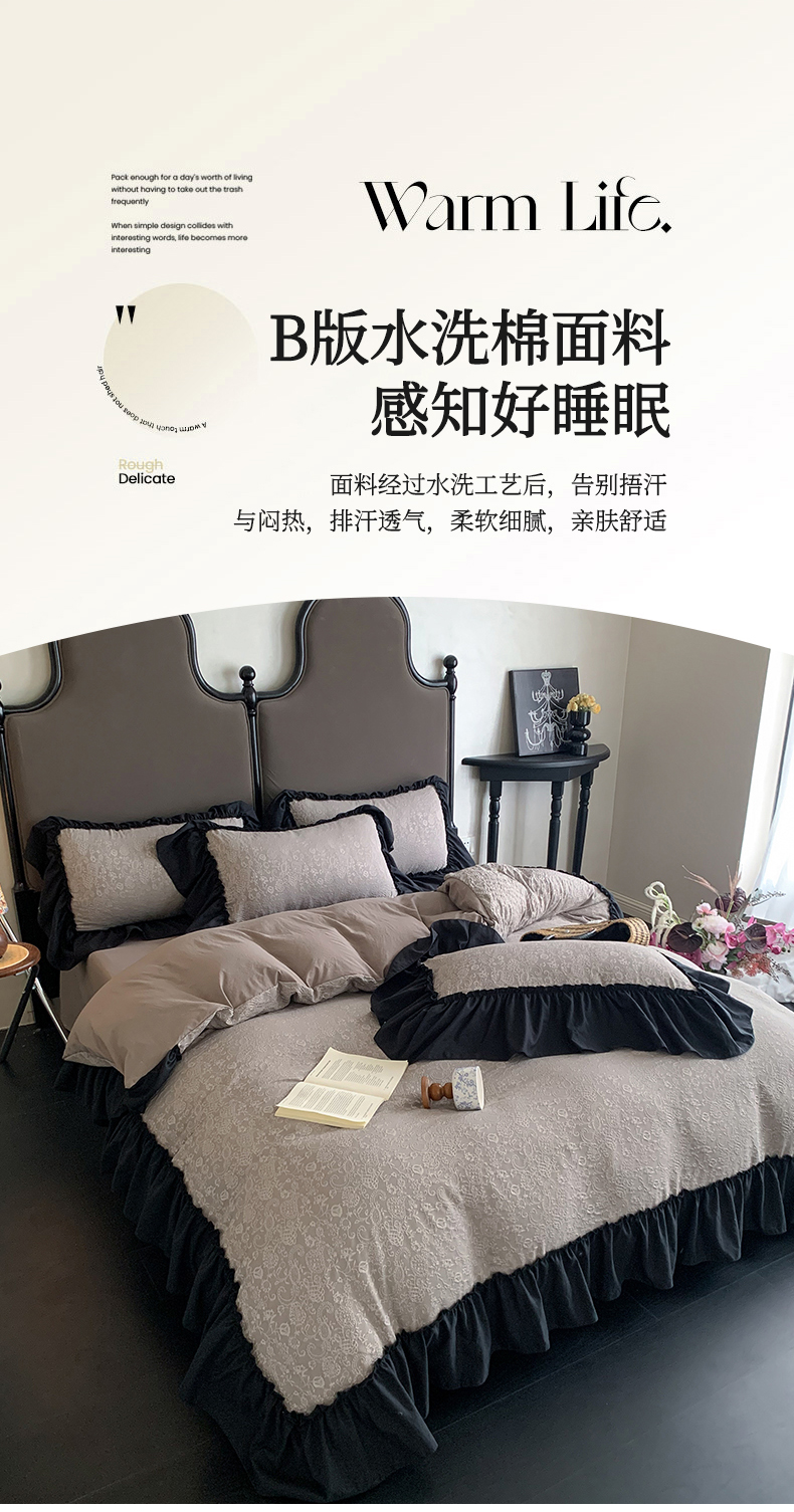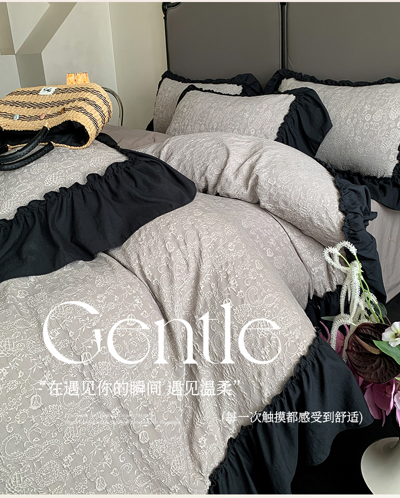当前位置: 91家纺网 > 商品网购 > 床品套件 > 四件套 > 水洗棉四件套 > 你好美丽 2025新款莫奈水洗磨毛双层纱立体提花大花边工艺款四件套 莫奈深咖