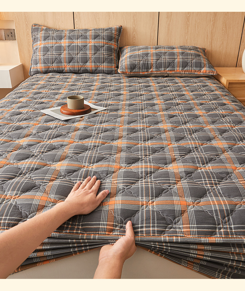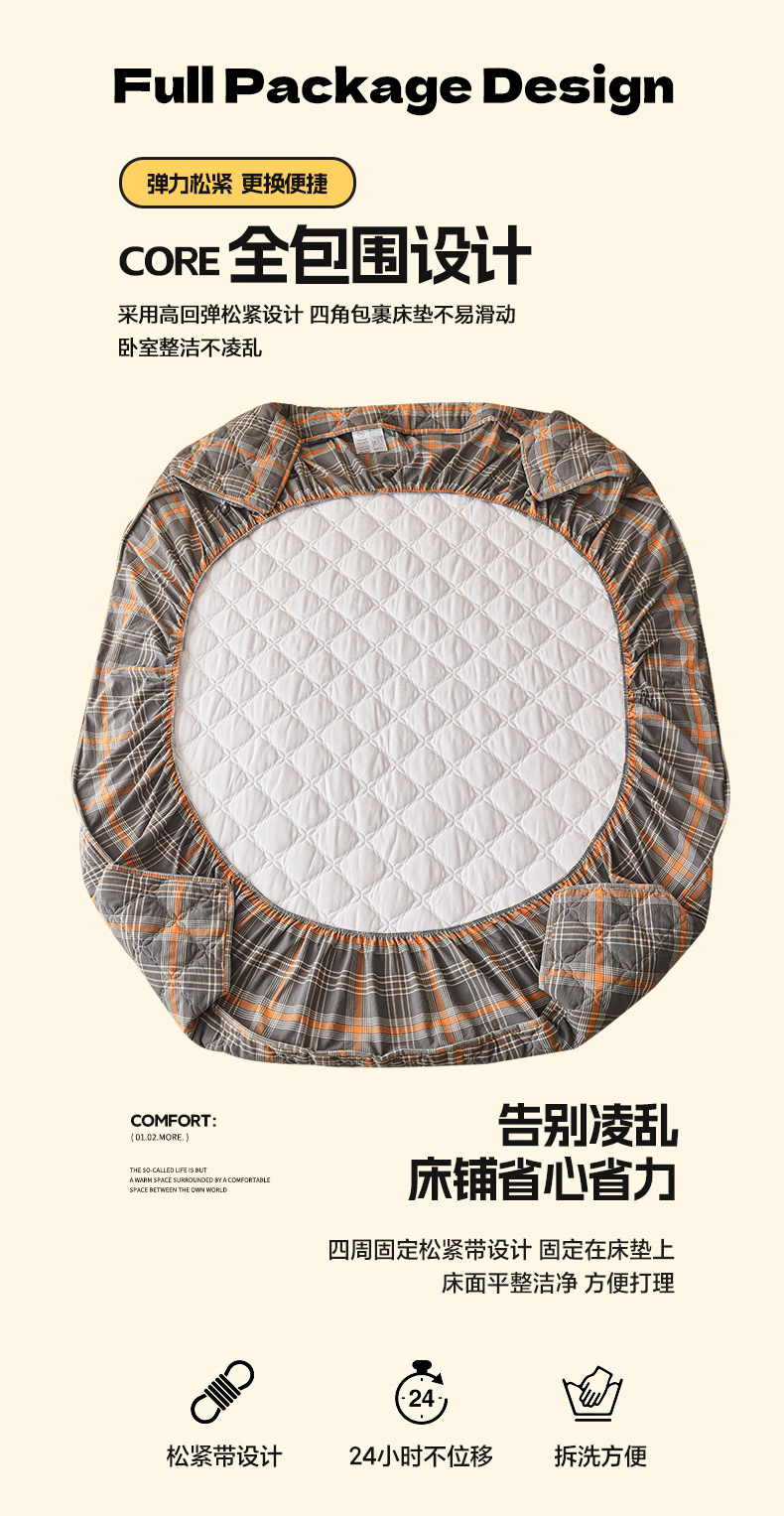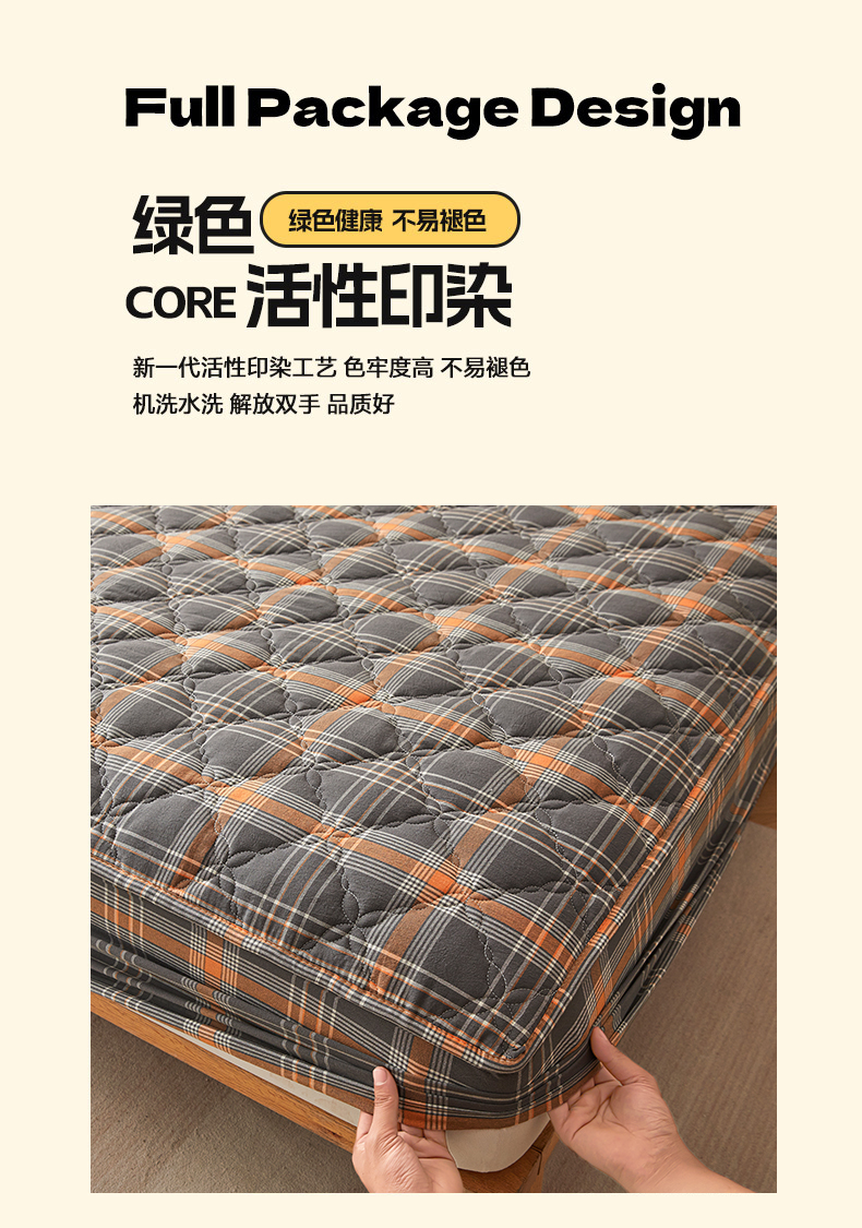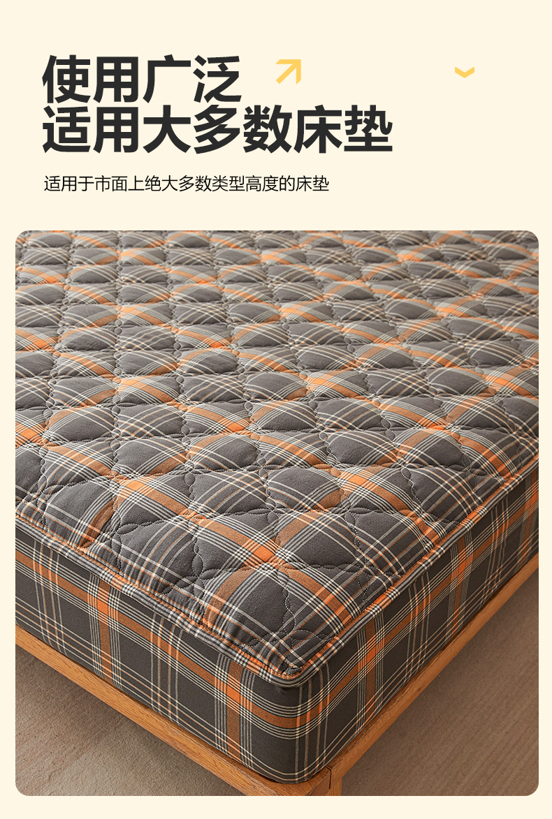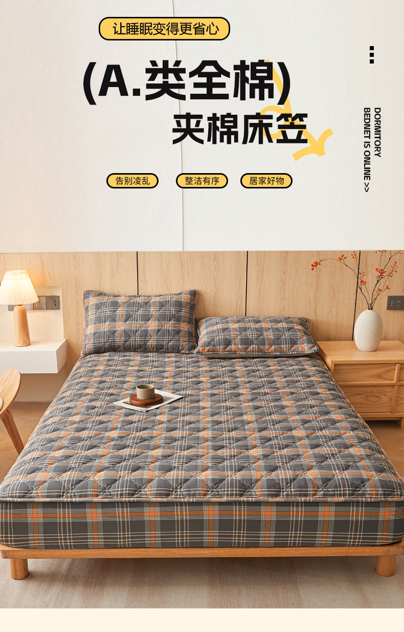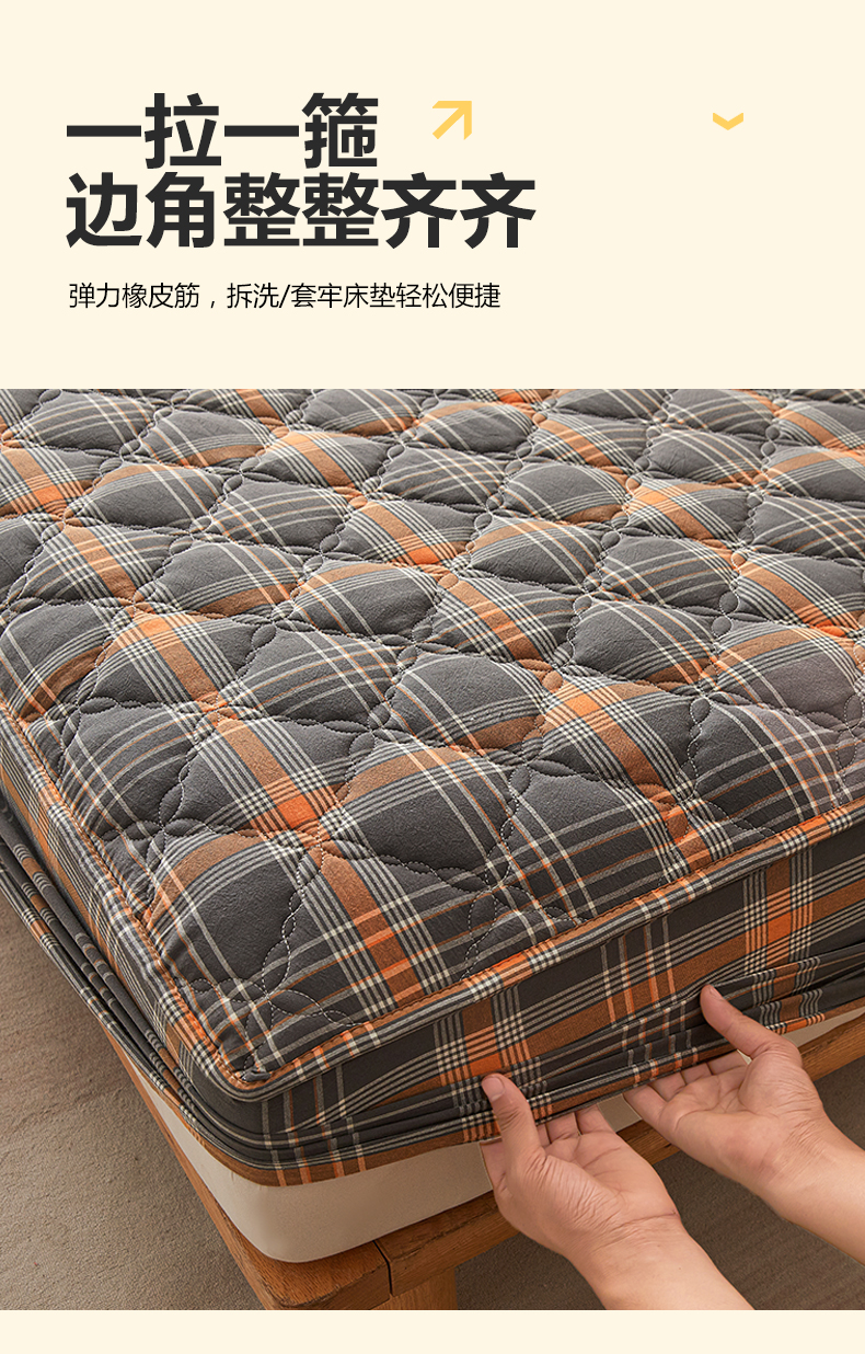(总)糯米猪家纺 2023新款亲肤棉六面全包夹棉床笠--时尚格,水蓝,深蓝,灰色,白色,米色,粉玉