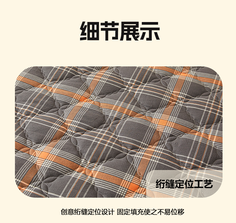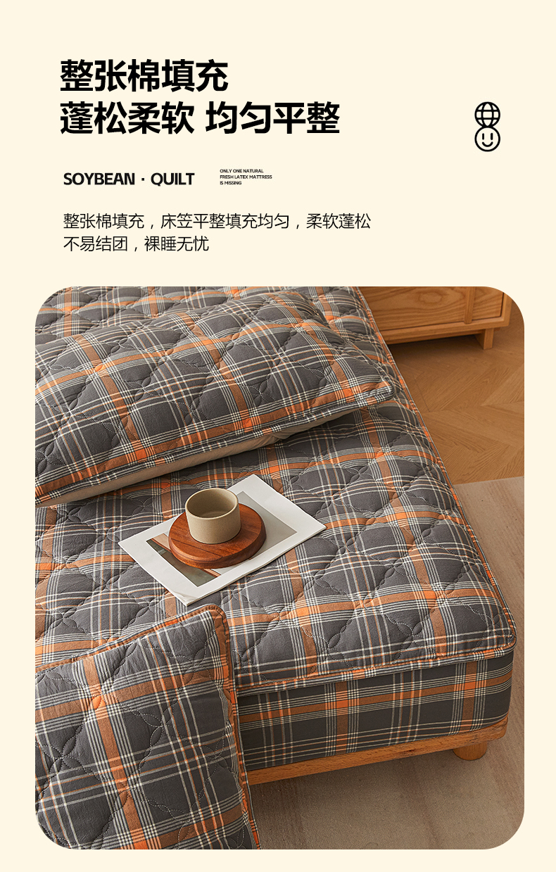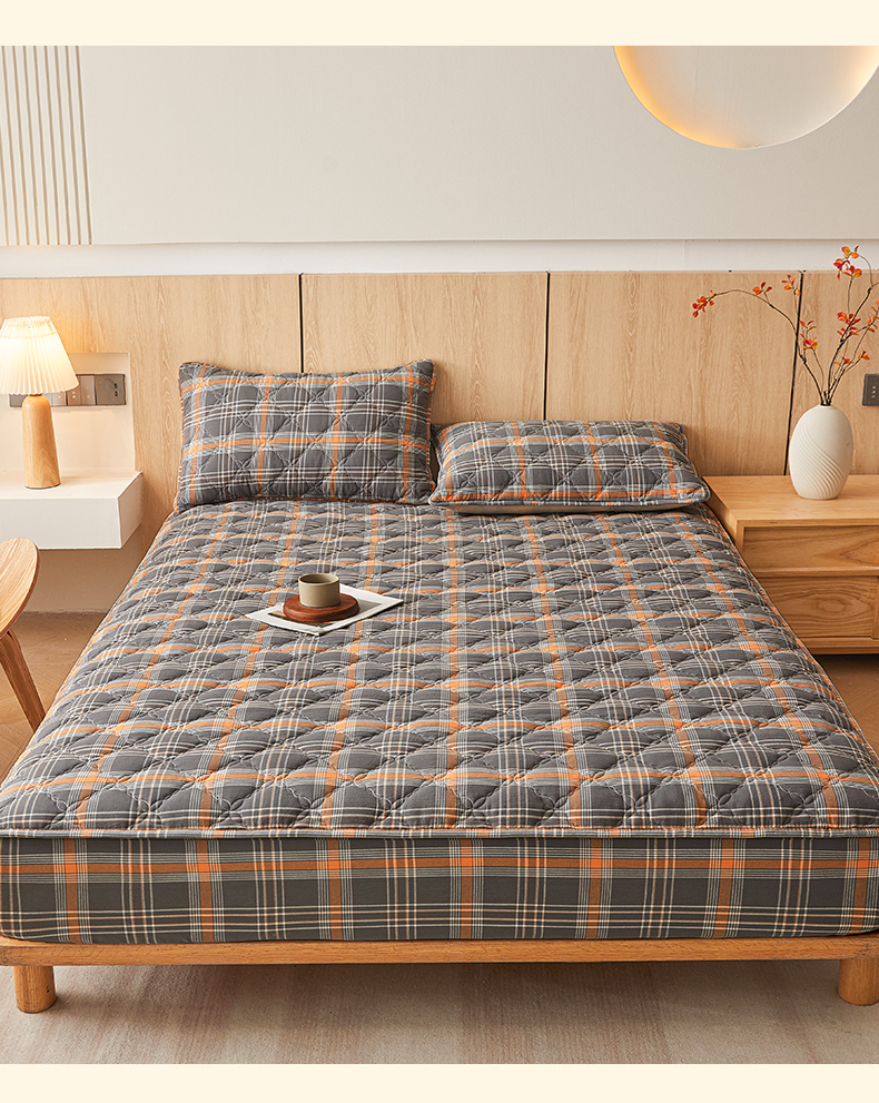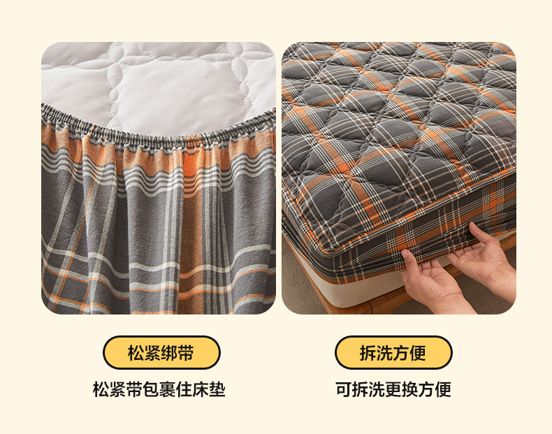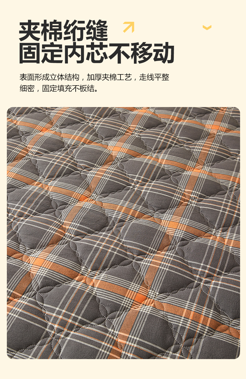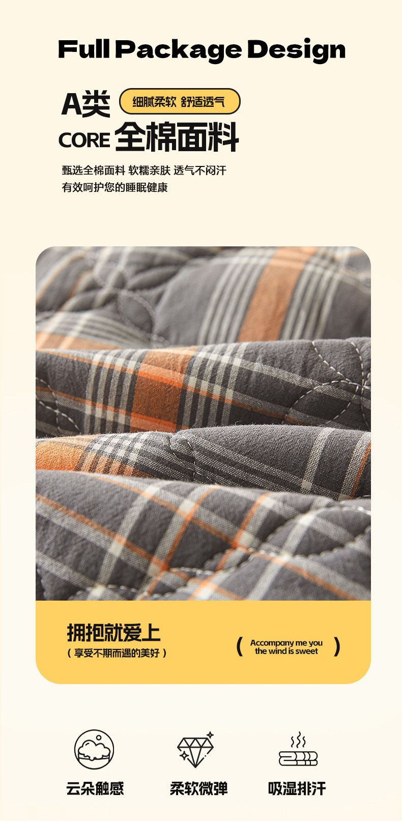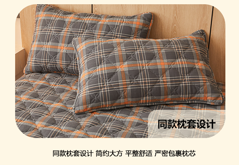 (总)糯米猪家纺 2023新款亲肤棉六面全包夹棉床笠--时尚格,水蓝,深蓝,灰色,白色,米色,粉玉