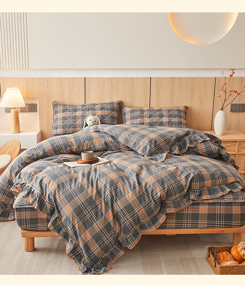 (总)糯米猪家纺 2025新款全棉色织水洗棉床裙,格纹 灰,简兮 兰,兰黄大格,晴空 灰,时尚 灰,雅致 兰