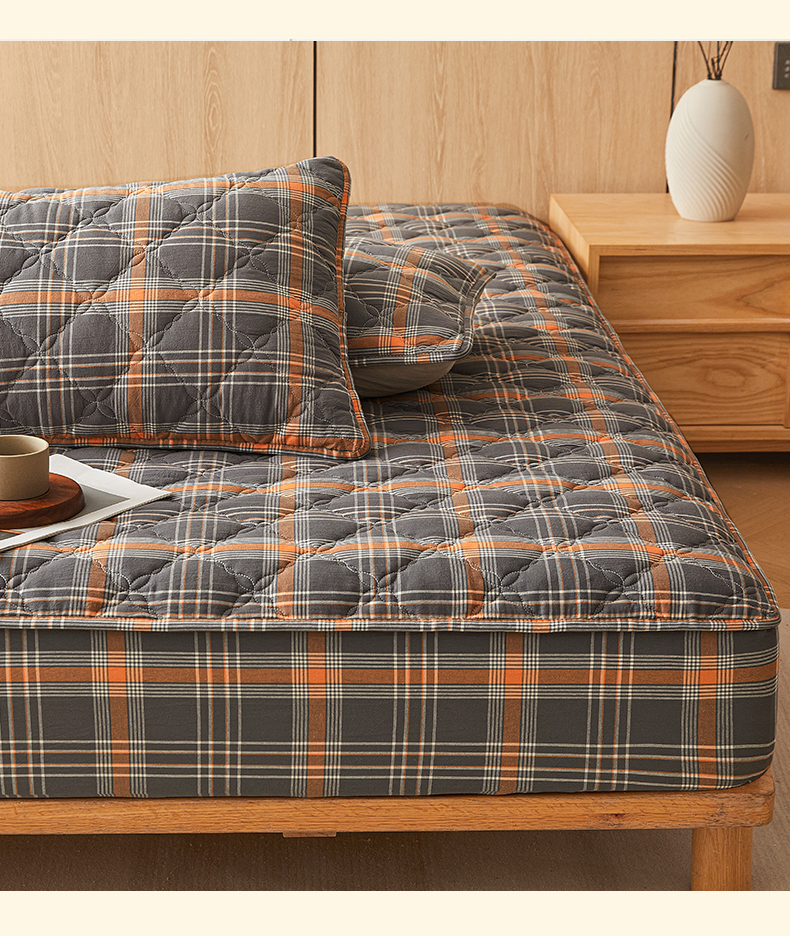 糯米猪家纺 2025新款全棉色织水洗棉床笠 时尚灰