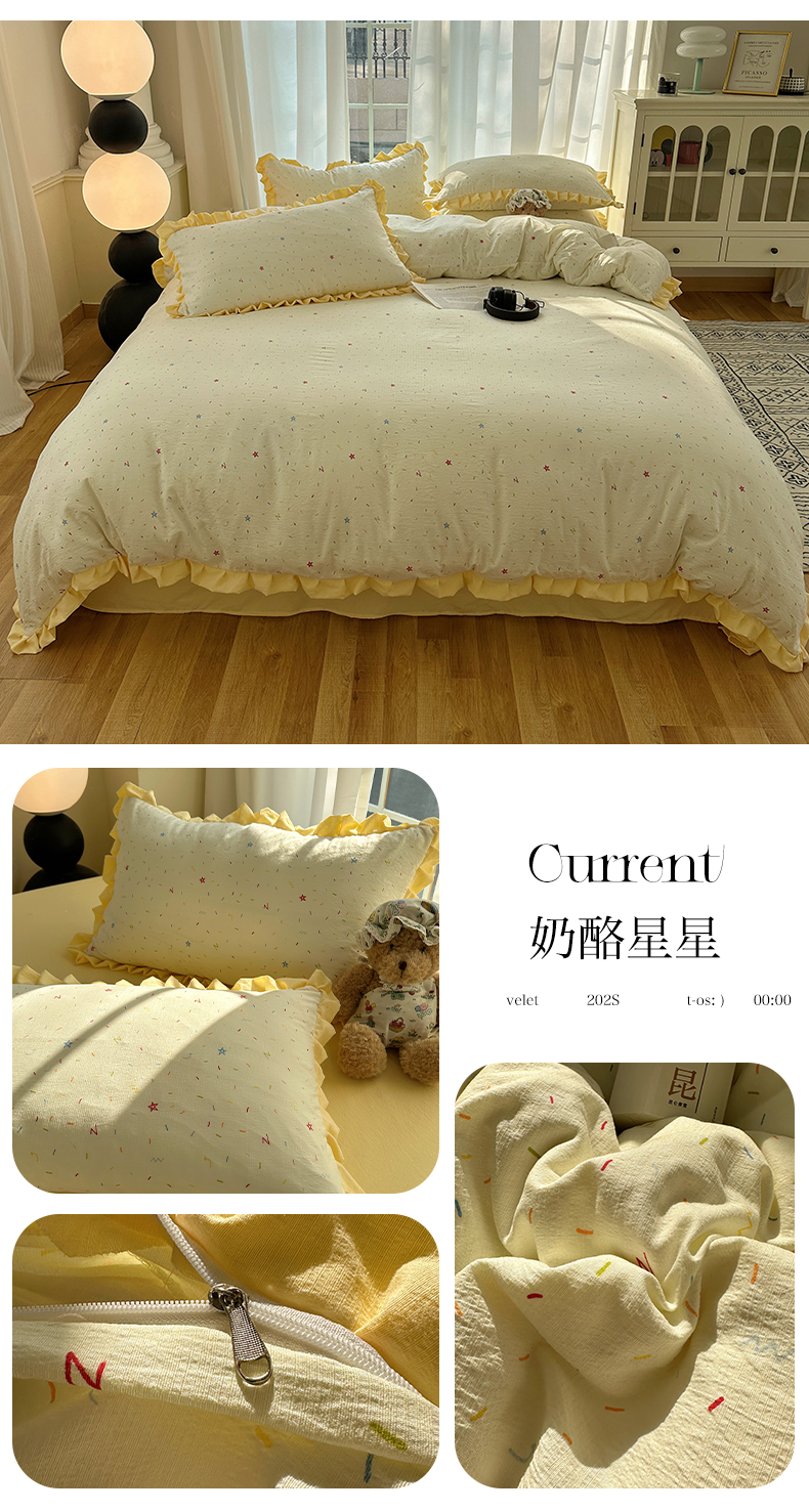 商品名称:韩都2025黑花边双层纱水洗针织棉韩版公主风四件套 奶酪星星