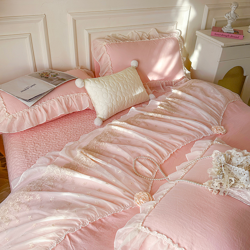 (总)富米莱(原臻工厂) 2024新款法式毛巾绣花边水洗棉四件套,赫本玫红,赫本奶白,赫本奶茶,赫本奶绿,赫本奶紫,赫本浅蓝,赫本童话粉,赫本芝士