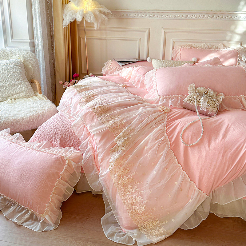 (总)富米莱(原臻工厂) 2026新款法式大花边A类古法仿棉云感纱床盖床裙四件套,大花边-爱心樱桃,大花边-粉花柔卧,大花边-粉樱kt,大花边-好运木马,大花边-花梦蔓,大花边-花意飘香,大花边-焦糖玫瑰,大花边-南瓜格韵,大花边-浅绿春韵,大花边-雾灰蔷薇,大花边-小幸运,大花边-鱼多多,大花边-紫韵花漾