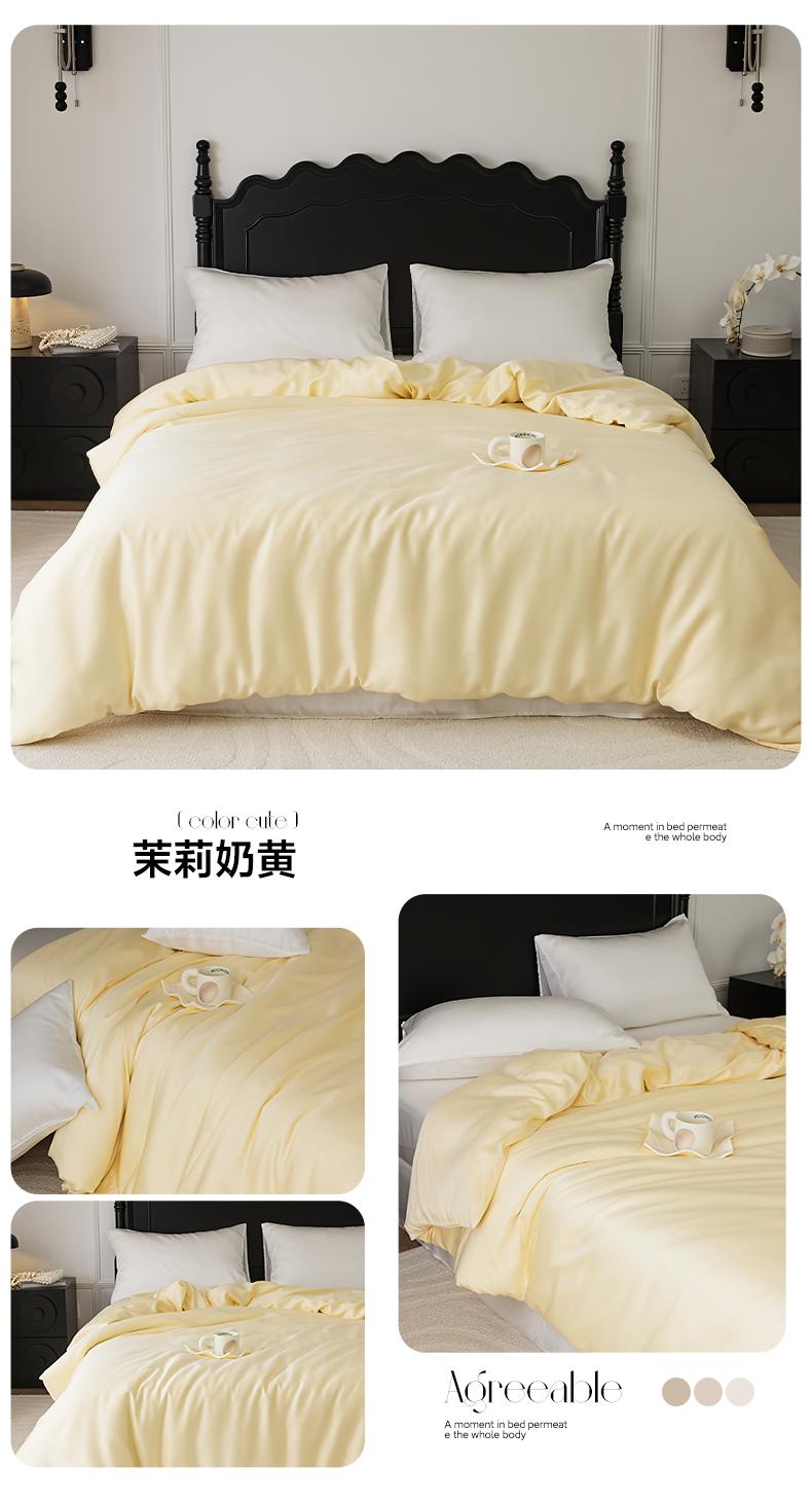 商品名称:EH家居 2025春夏天丝纯色单被套 茉莉奶黄