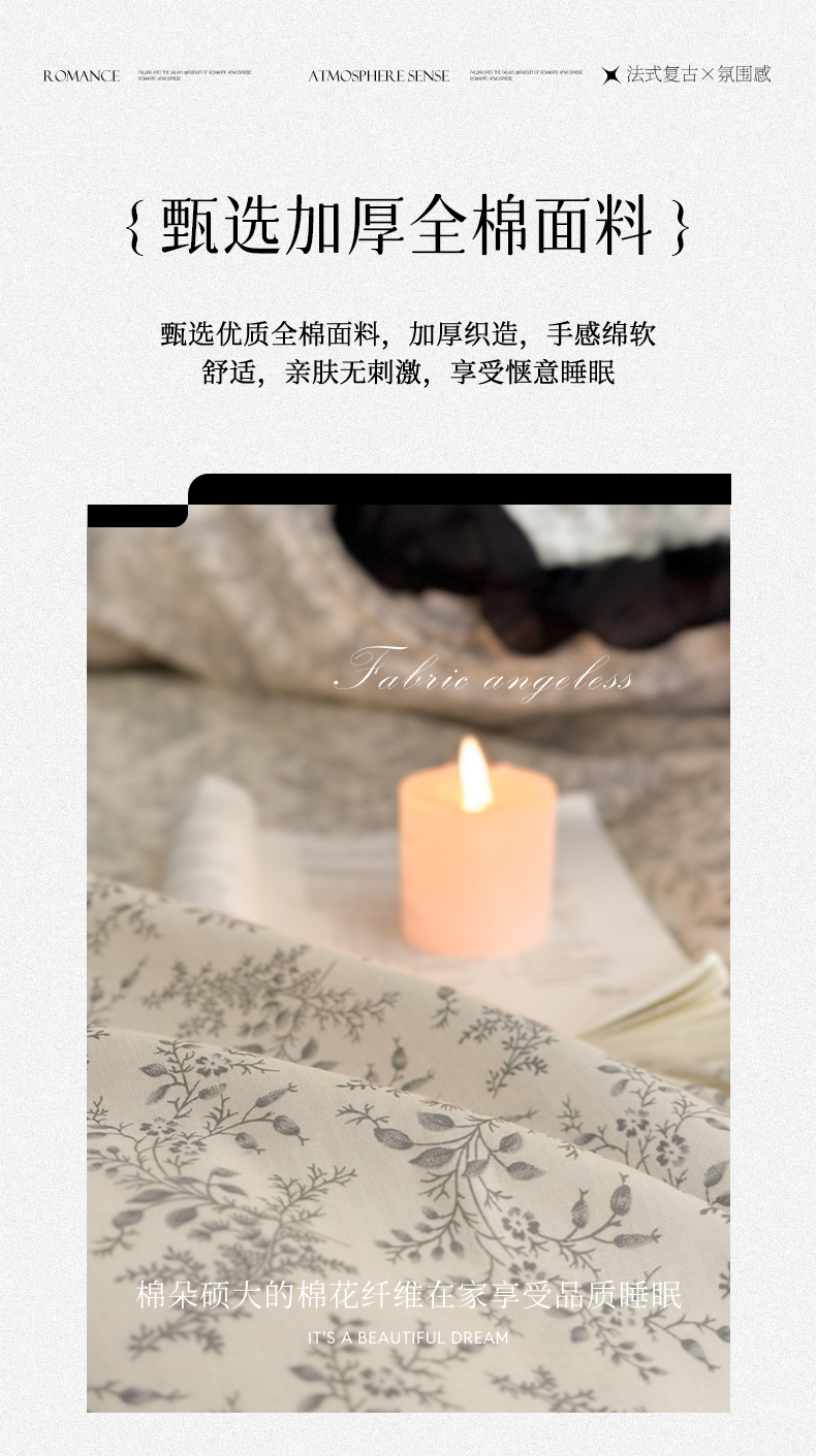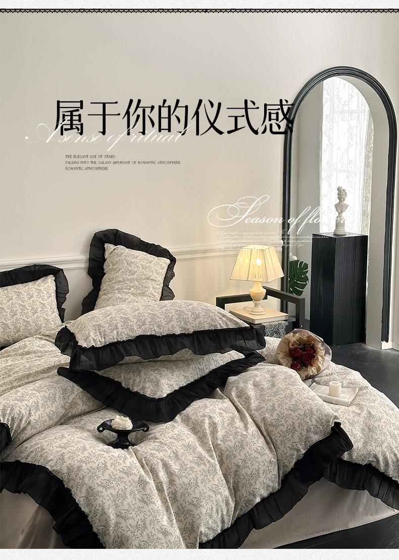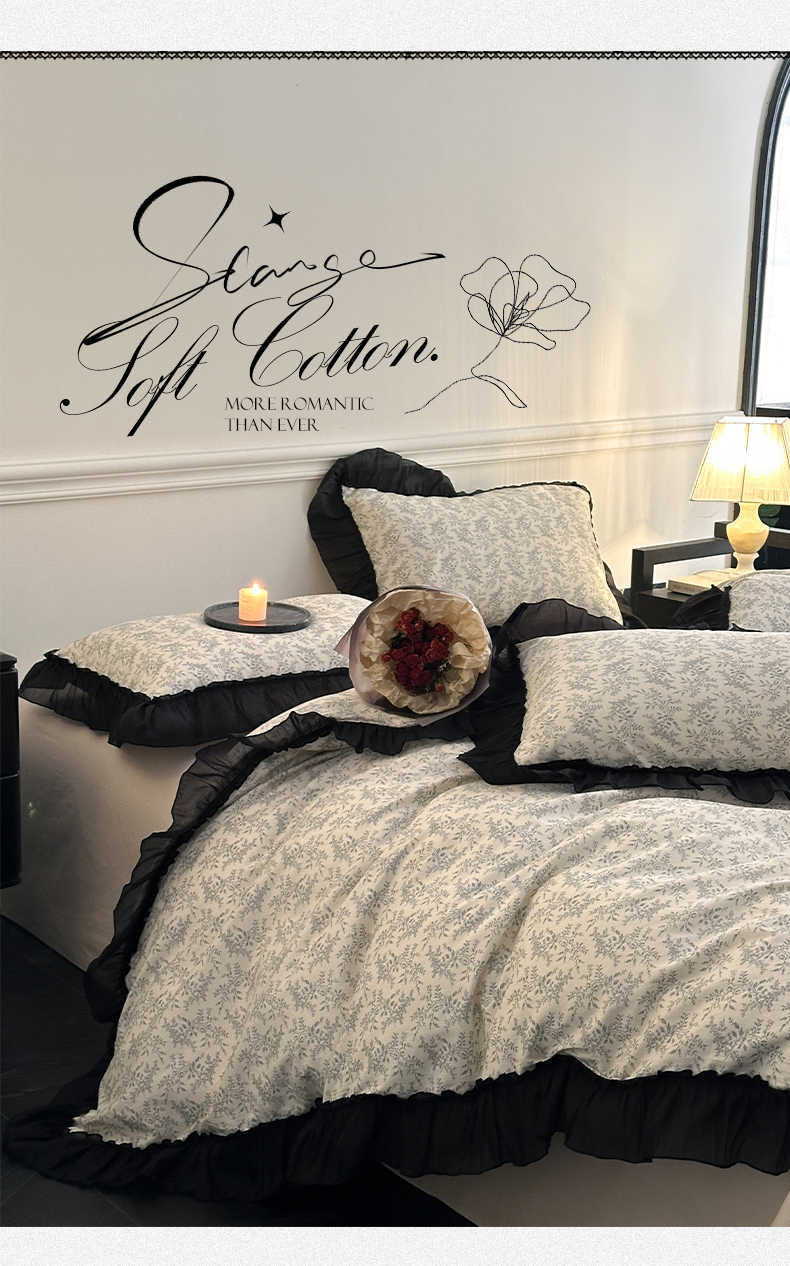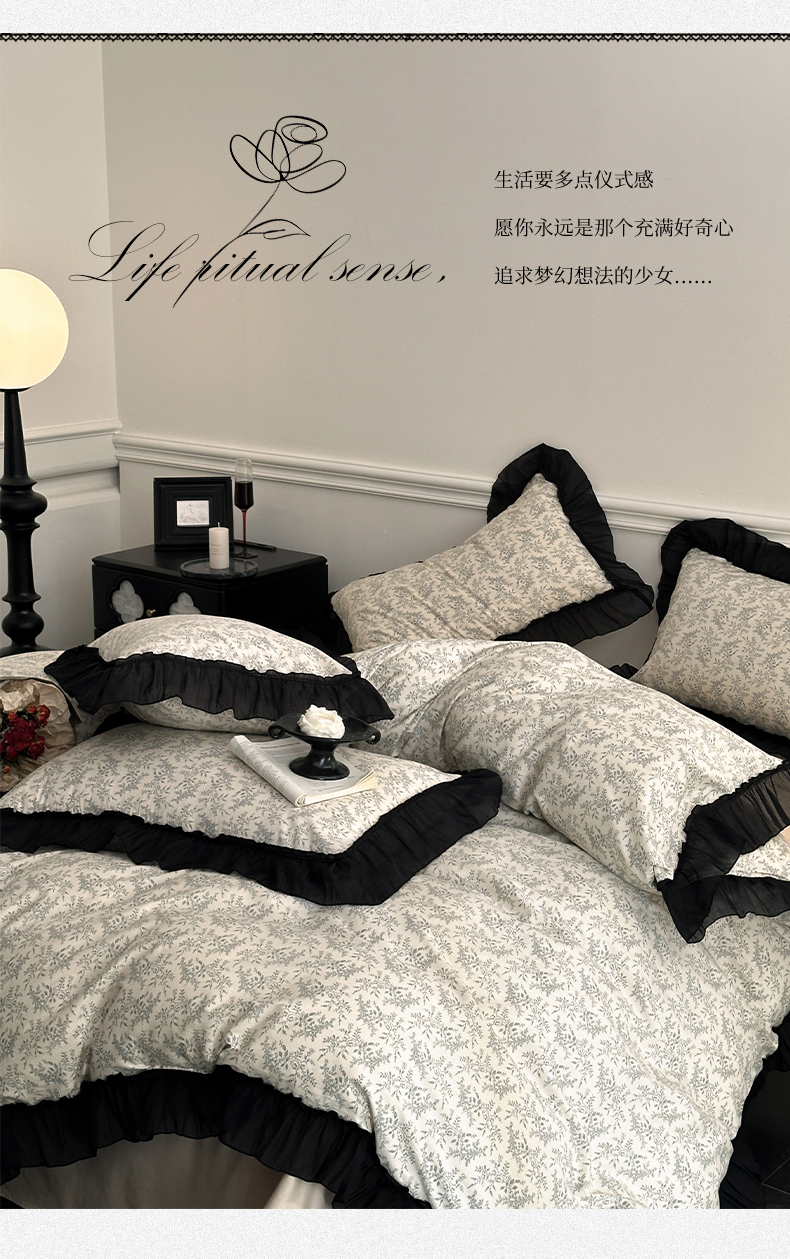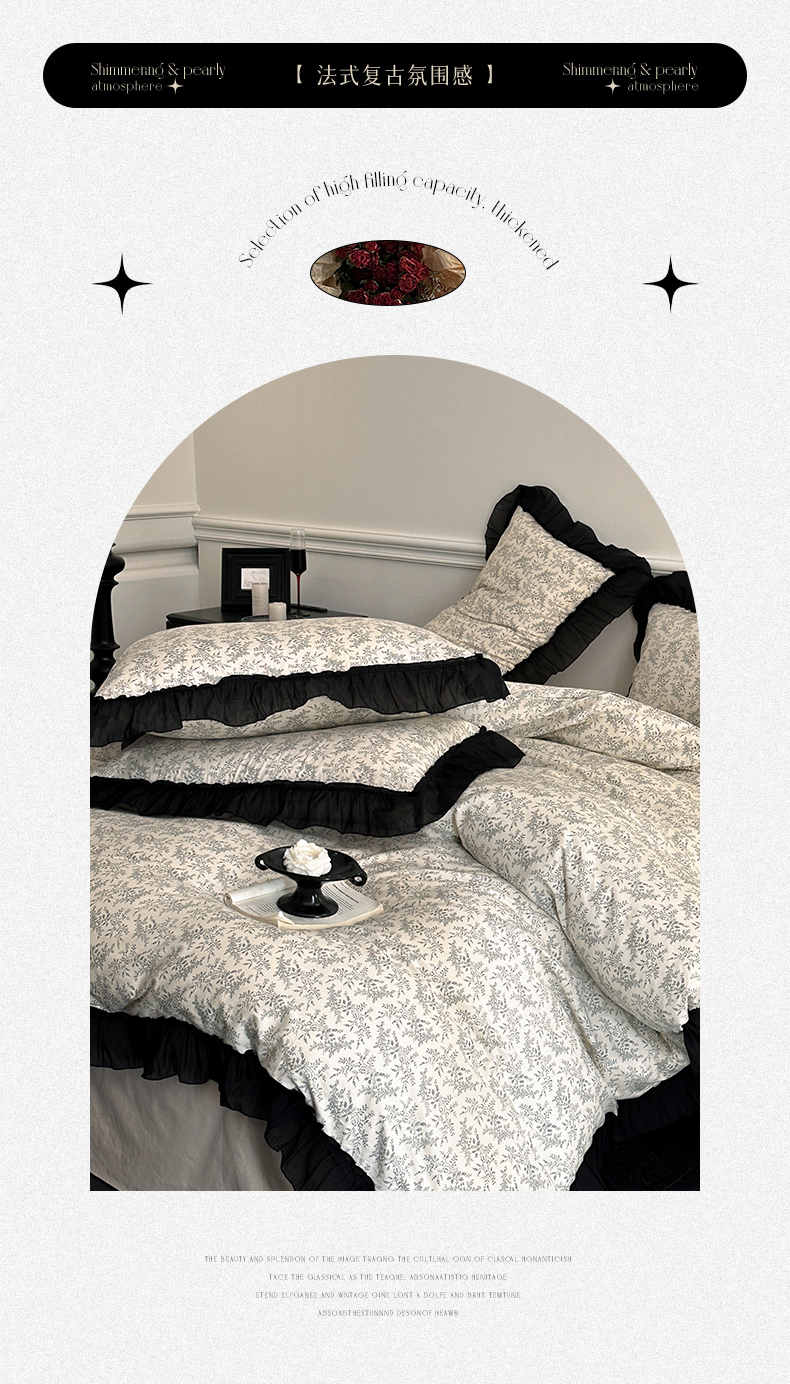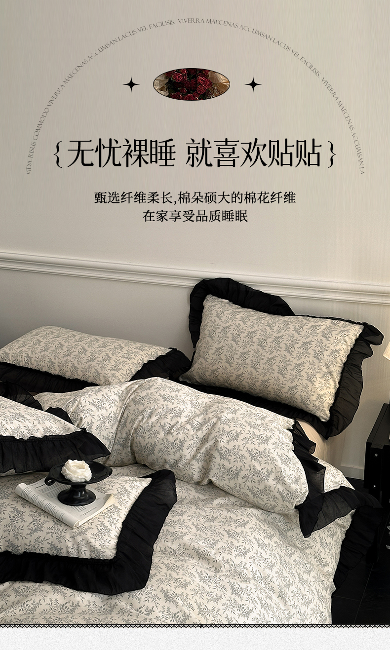 当前位置: 91家纺网 > 商品网购 > 床品套件 > 四件套 > 全棉普通四件套 > 蓝邻家纺 2025年新款全棉法式复古真丝绉花边四件套系列 瑞莎-灰