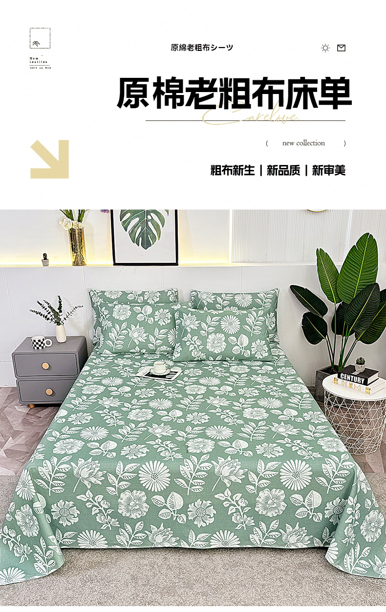 • 91家纺网 家纺一手货源 找家纺 伊而梦蚊帐 2025新款原棉老粗布床单 春草青