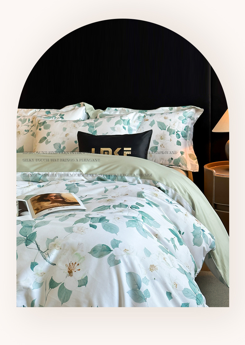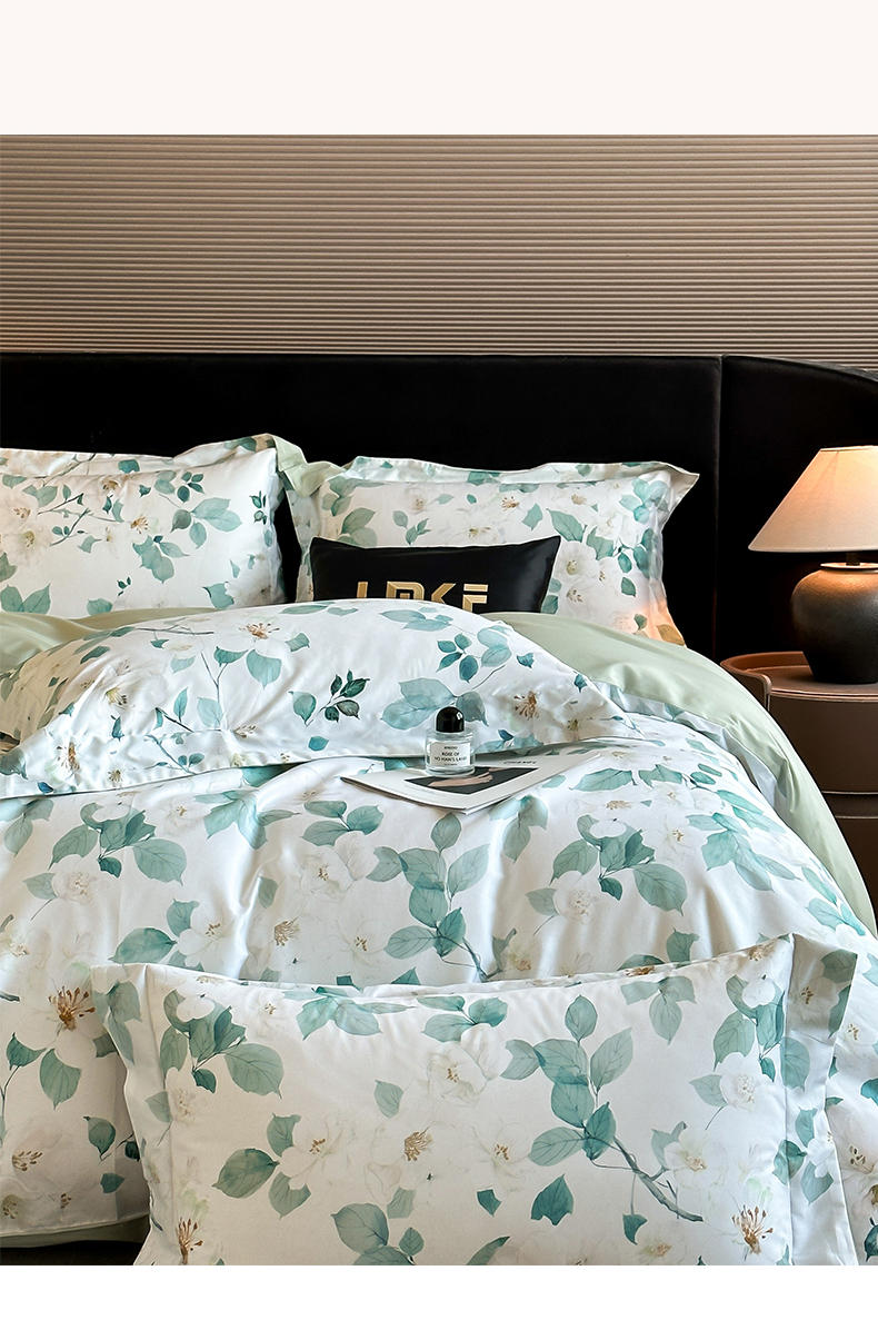 商品名称:蓝米卡夫 2025新品-60S全棉数码印花长绒棉四件套(礼盒包装) 芳香情思-绿