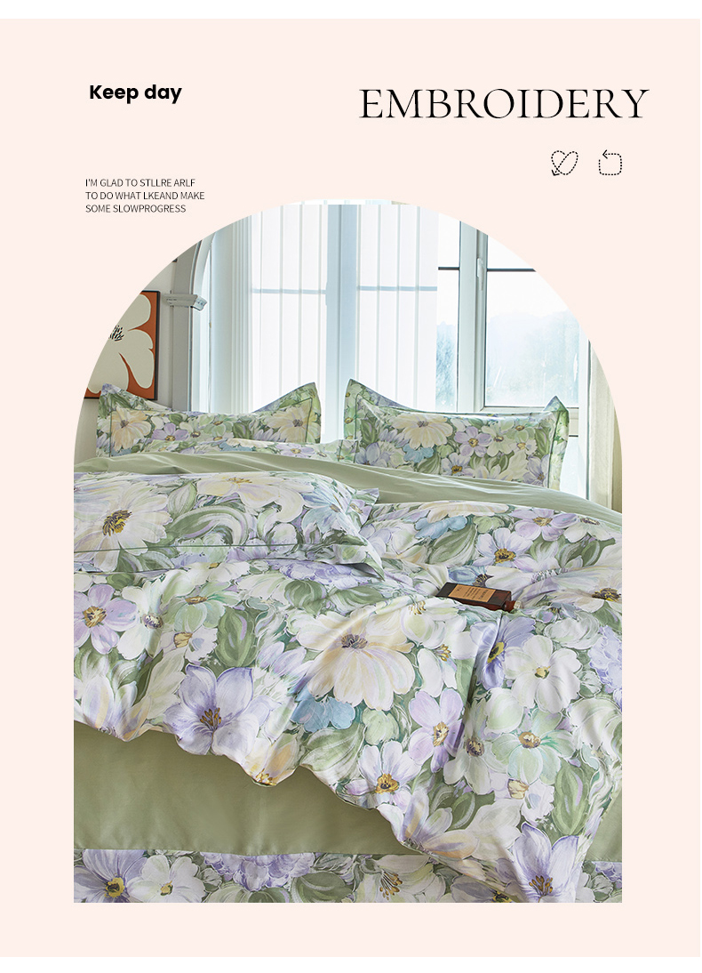 启航家居 2025春夏全棉铂金棉数码印花四件套 绽放序曲绿