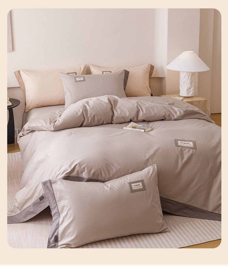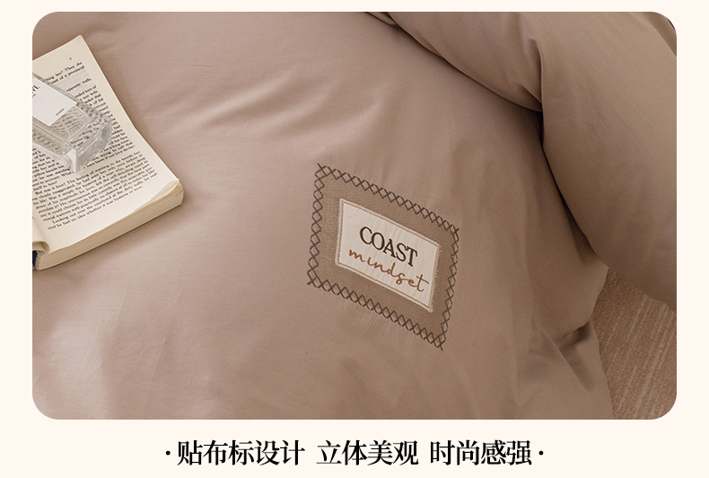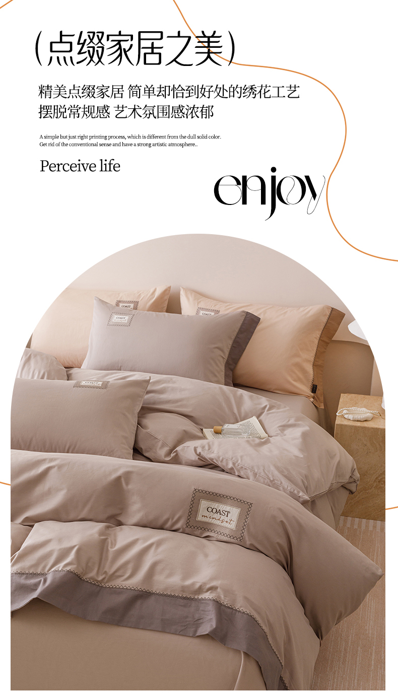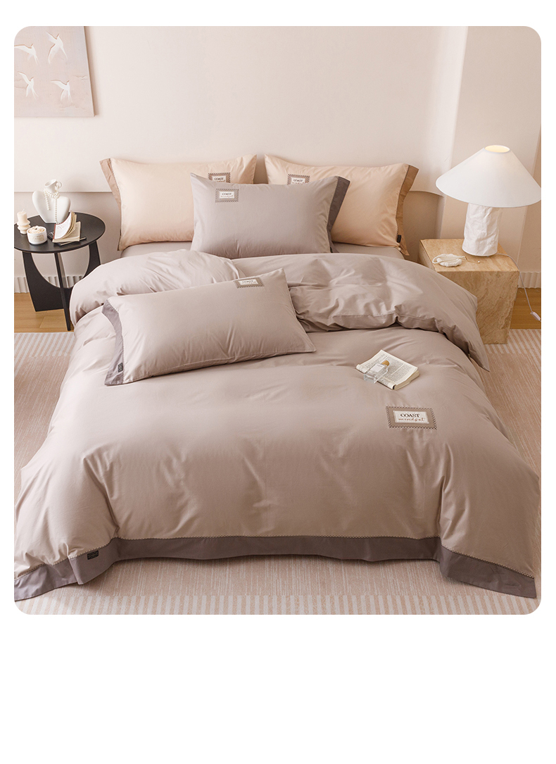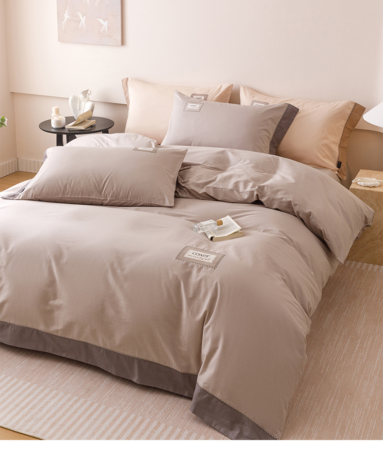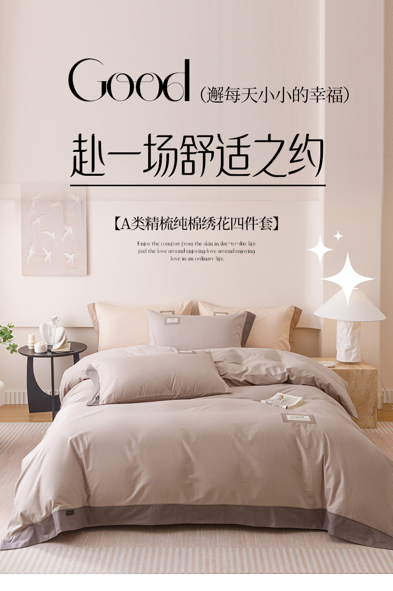 艾莱家纺 2025新款A类精梳贴布纯棉刺绣花四件套-星澜 星澜-松露咖