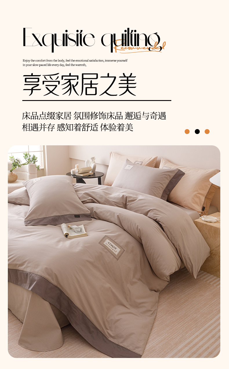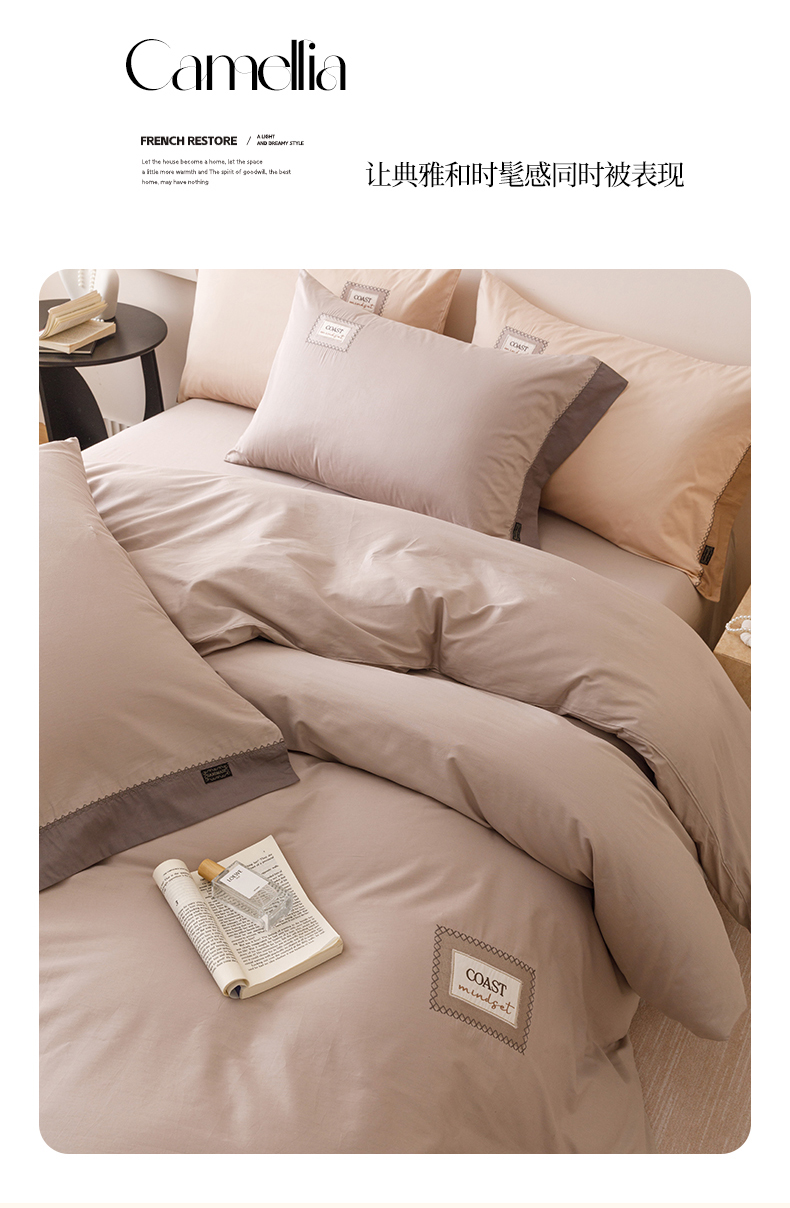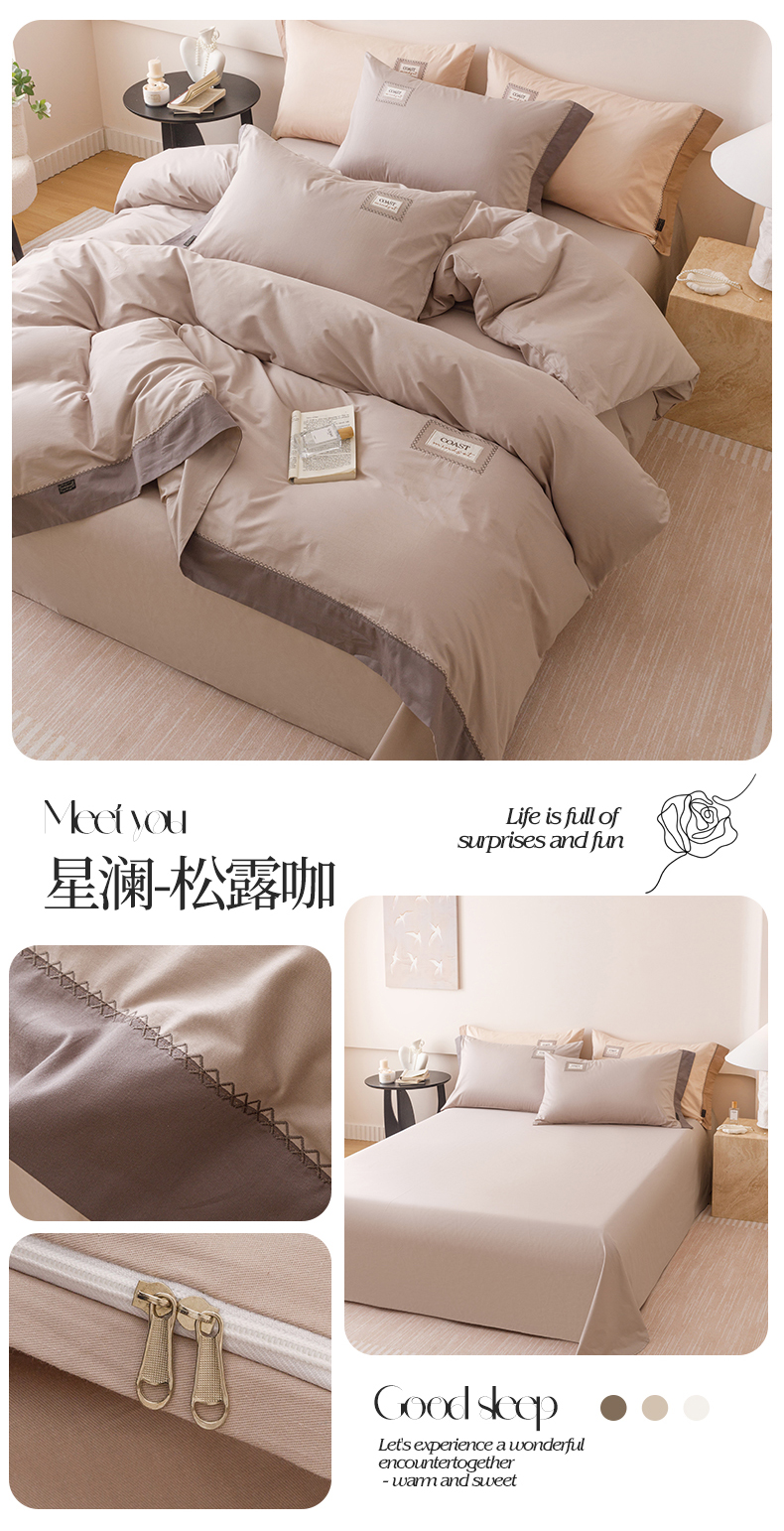 商品名称:艾莱家纺 2025新款A类精梳贴布纯棉刺绣花四件套-星澜 星澜-松露咖