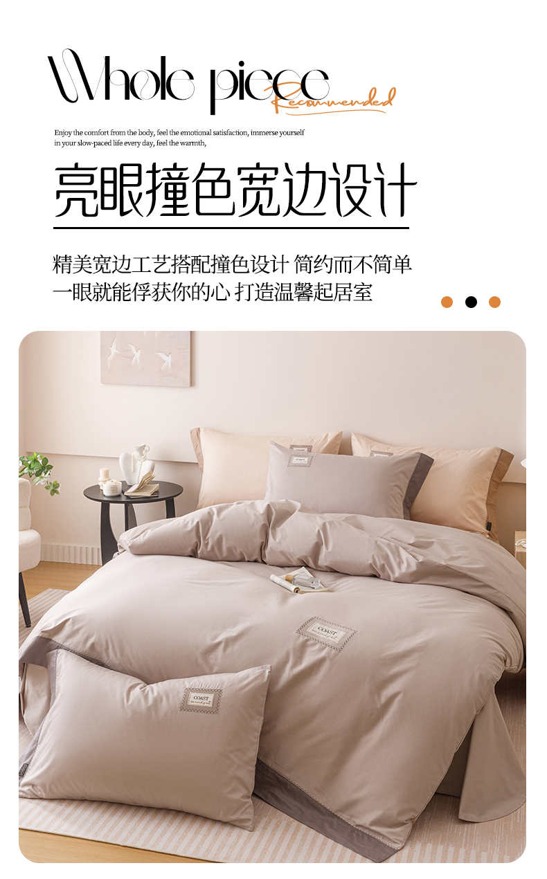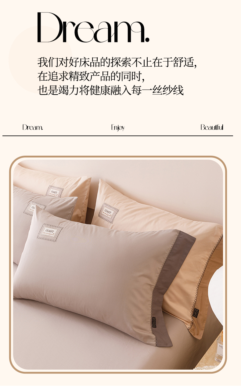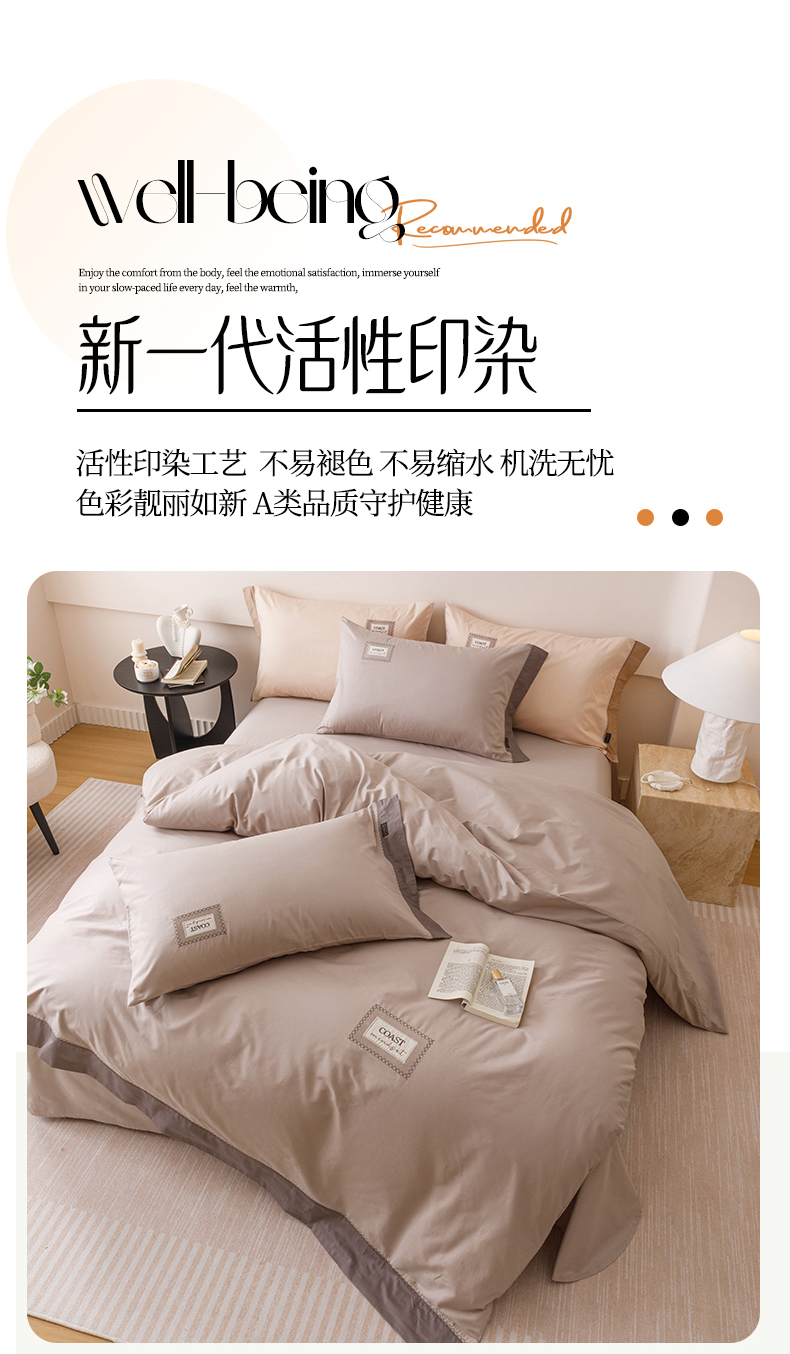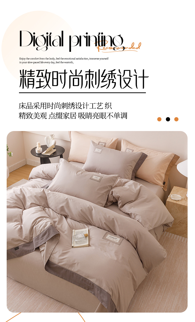 商品名称:艾莱家纺 2025新款A类精梳贴布纯棉刺绣花四件套-星澜 星澜-松露咖