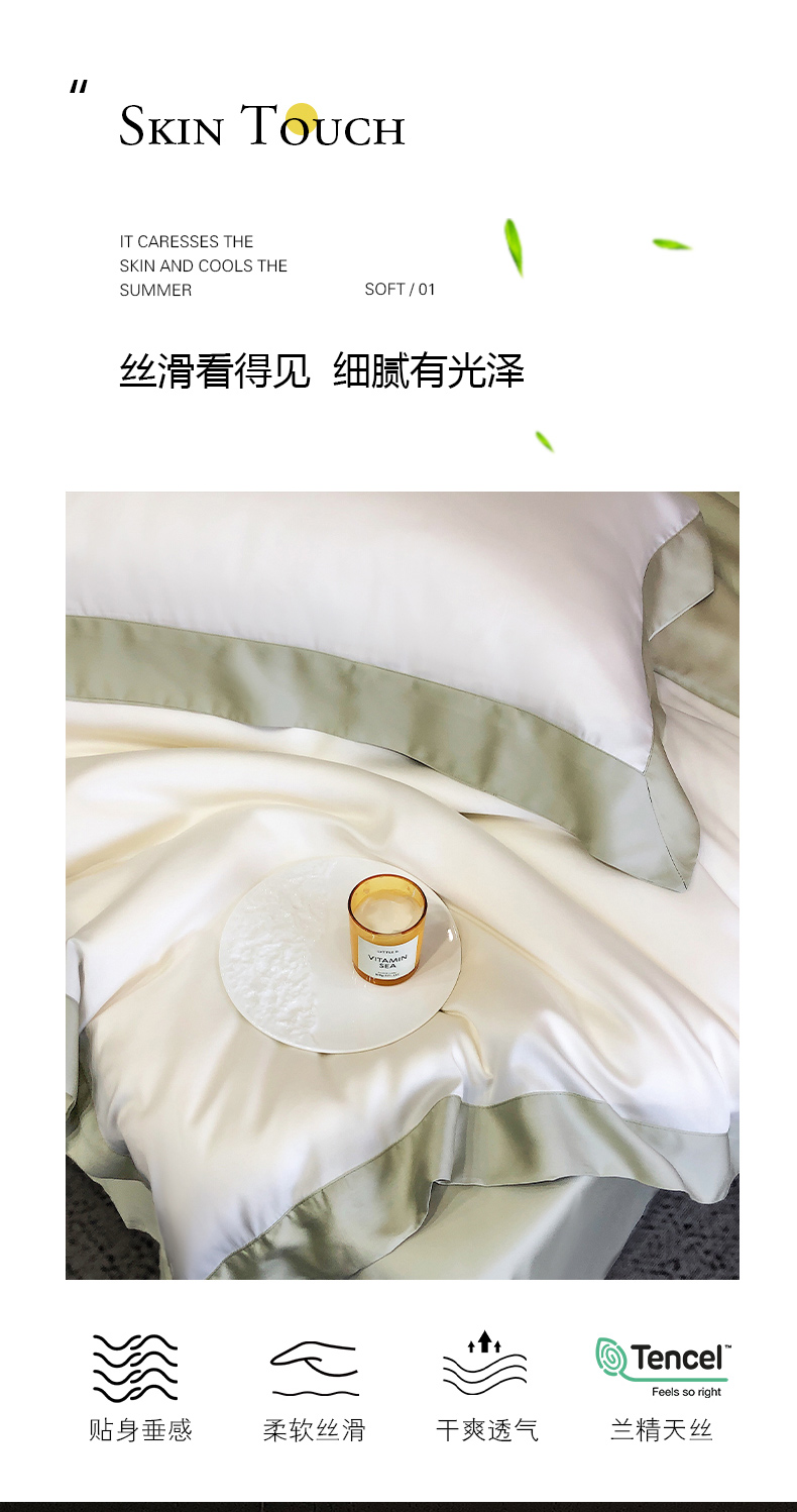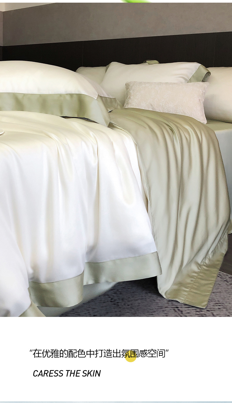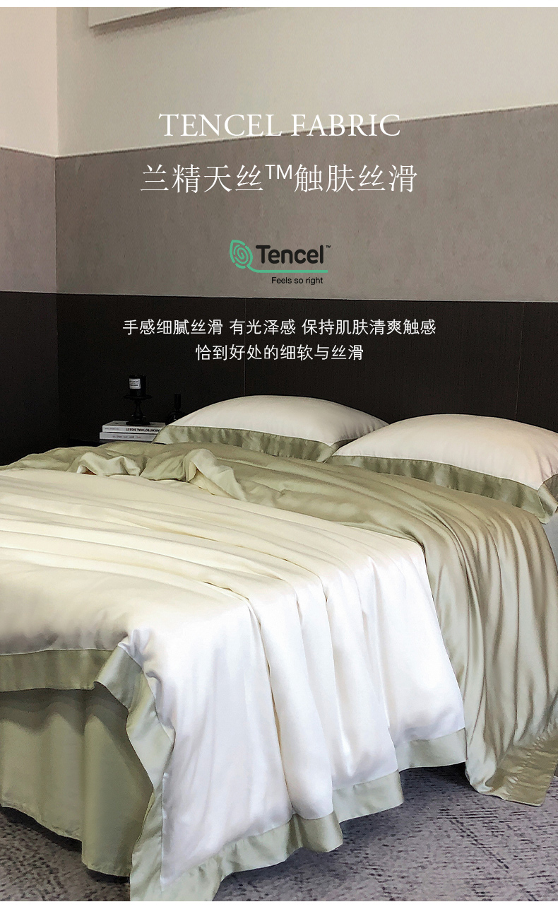 商品名称:云栖家居 2025莱赛尔60兰精天丝双拼纯色四件套 象牙白&春意绿