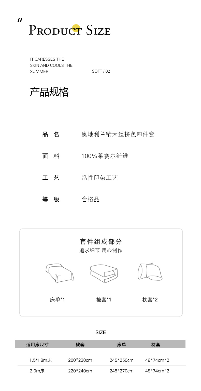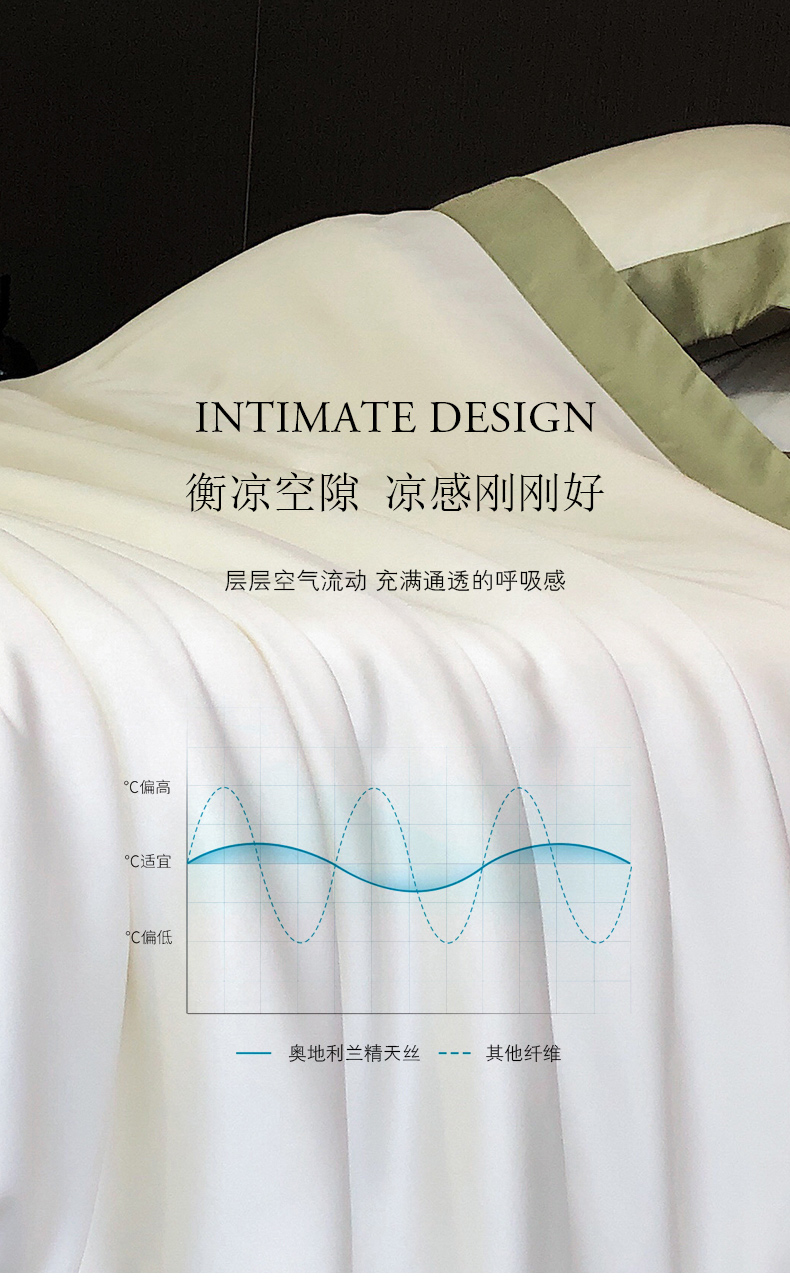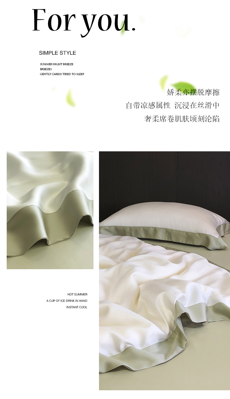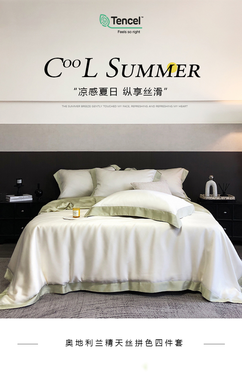 商品名称:云栖家居 2025莱赛尔60兰精天丝双拼纯色四件套 象牙白&春意绿