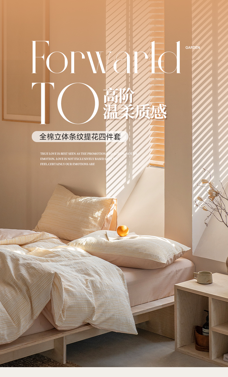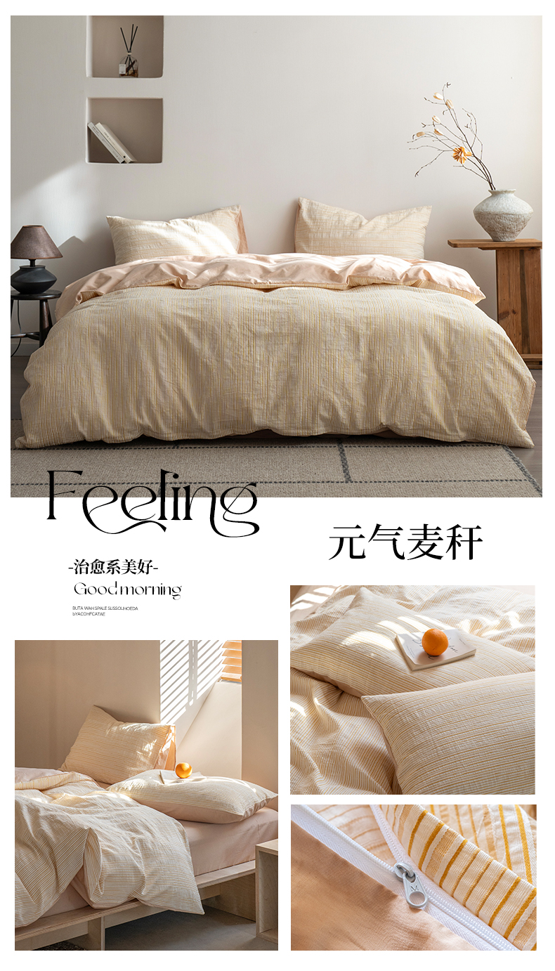 当前位置: 91家纺网 > 商品网购 > 床品套件 > 四件套 > 全棉普通四件套 > 艾咪-Amy ntmy 2025新款全棉立体条纹提花四件套 元气麦秆