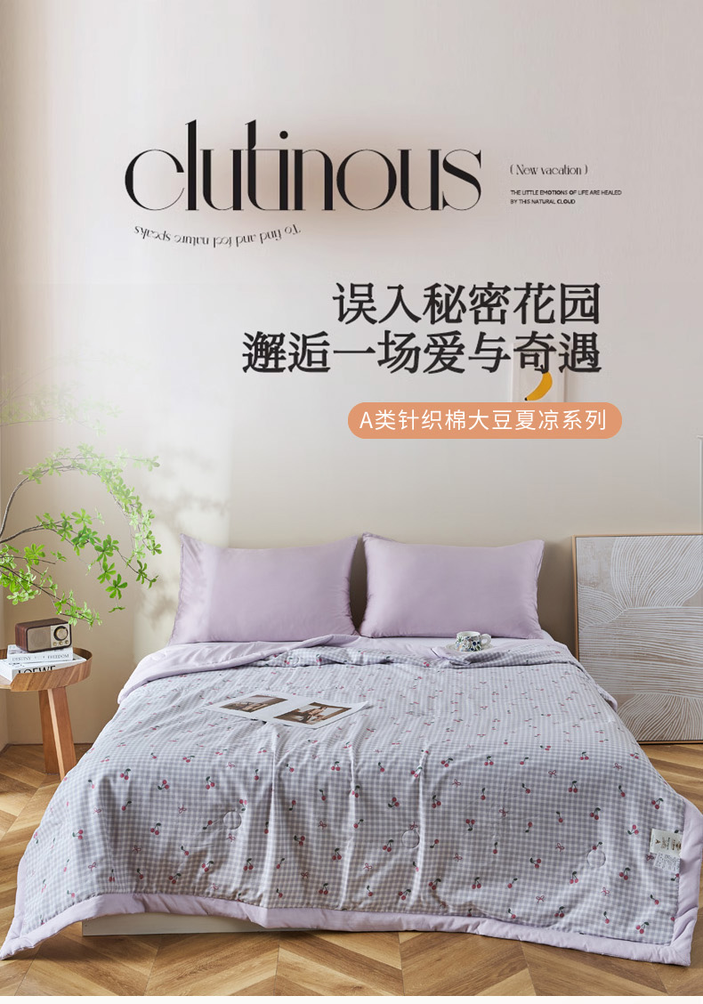 商品名称:森林人 2025新款A类针织棉大豆夏凉被 樱桃