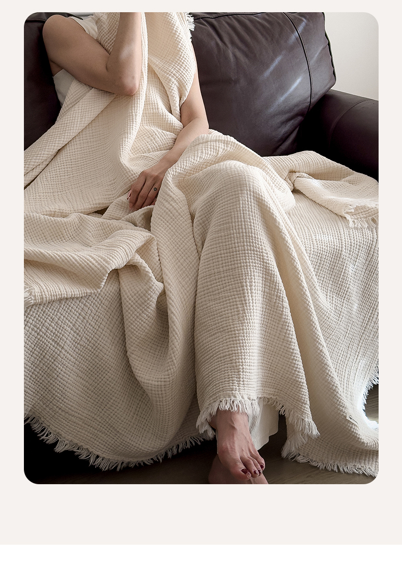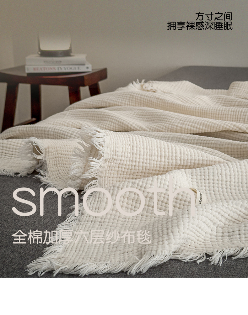 兄弟坊 2026新款美拉德全棉夏被纱布毯空调毯飞机毯 雅居-温软白