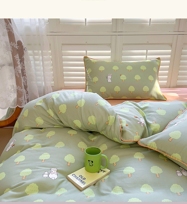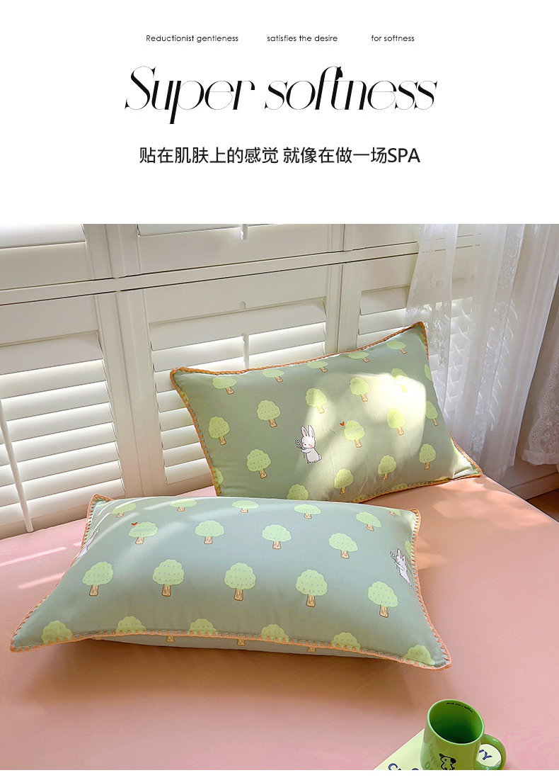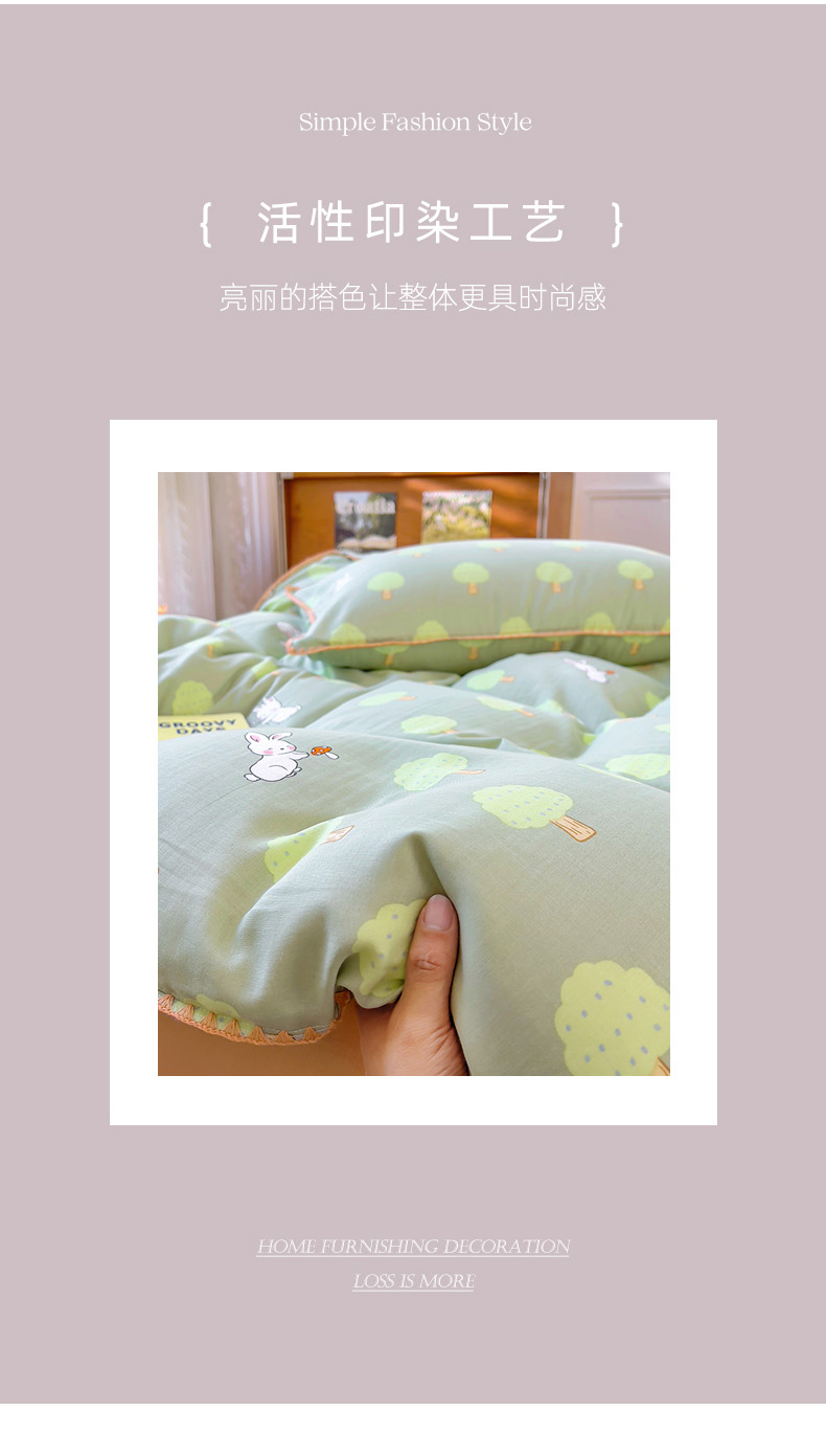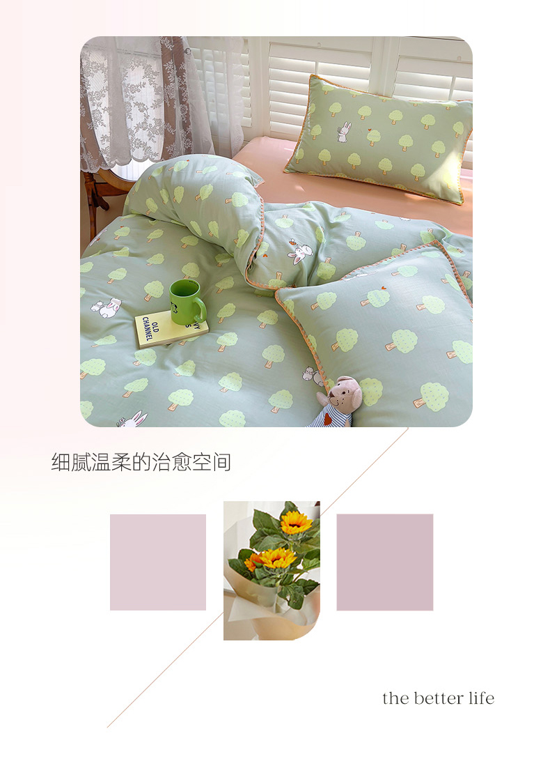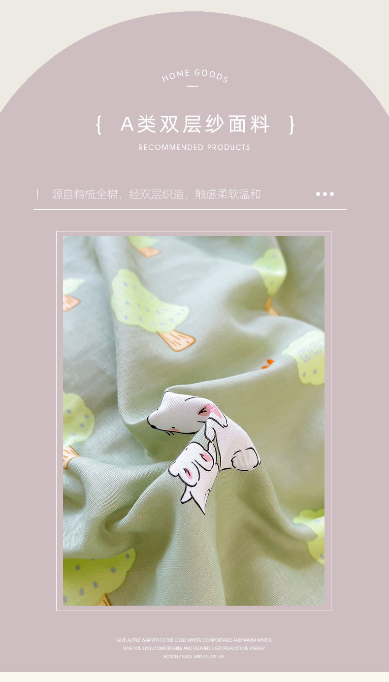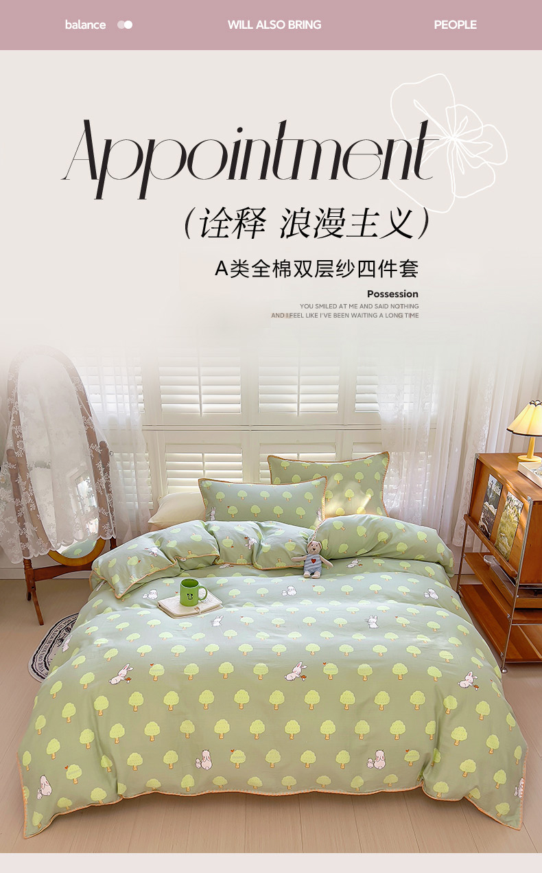 商品名称:田野家纺2025新款A类全棉双层纱四件套 萌兔森林