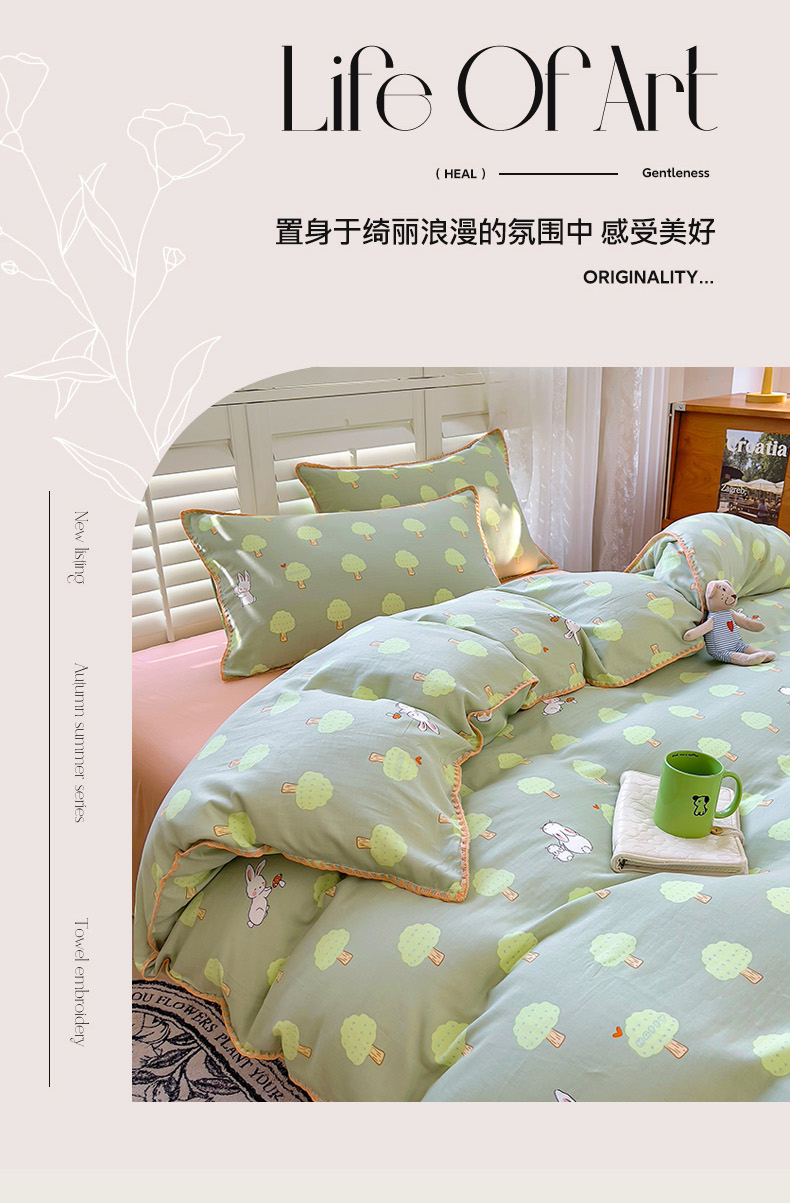 (总)田野 2023新款全棉A类贝壳边双层纱四件套,饼干熊,波波兔,呆萌熊,萌宠乐园,萌兔森林,甜心小兔,薇拉,小蘑菇,伊甜