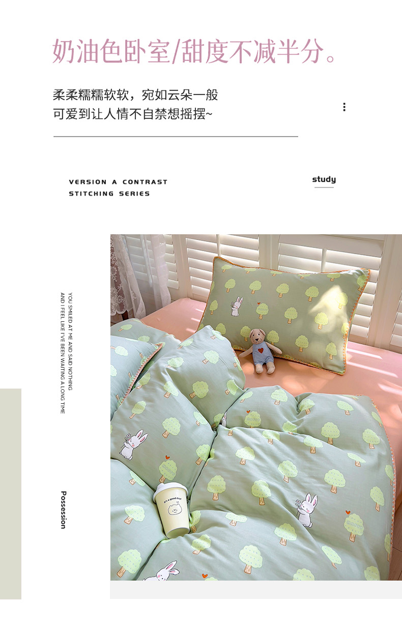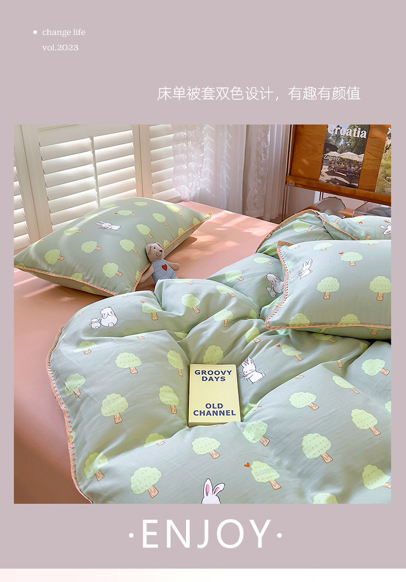(总)田野 2022新款水洗棉小清新小碎花全棉四件套,花丛,花涧,绿婉,曼舞,桃夭,甜馨草莓,兔兔,银杏