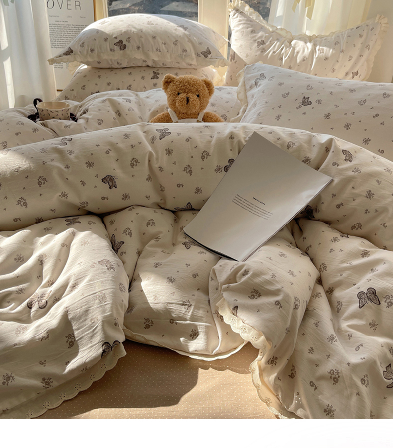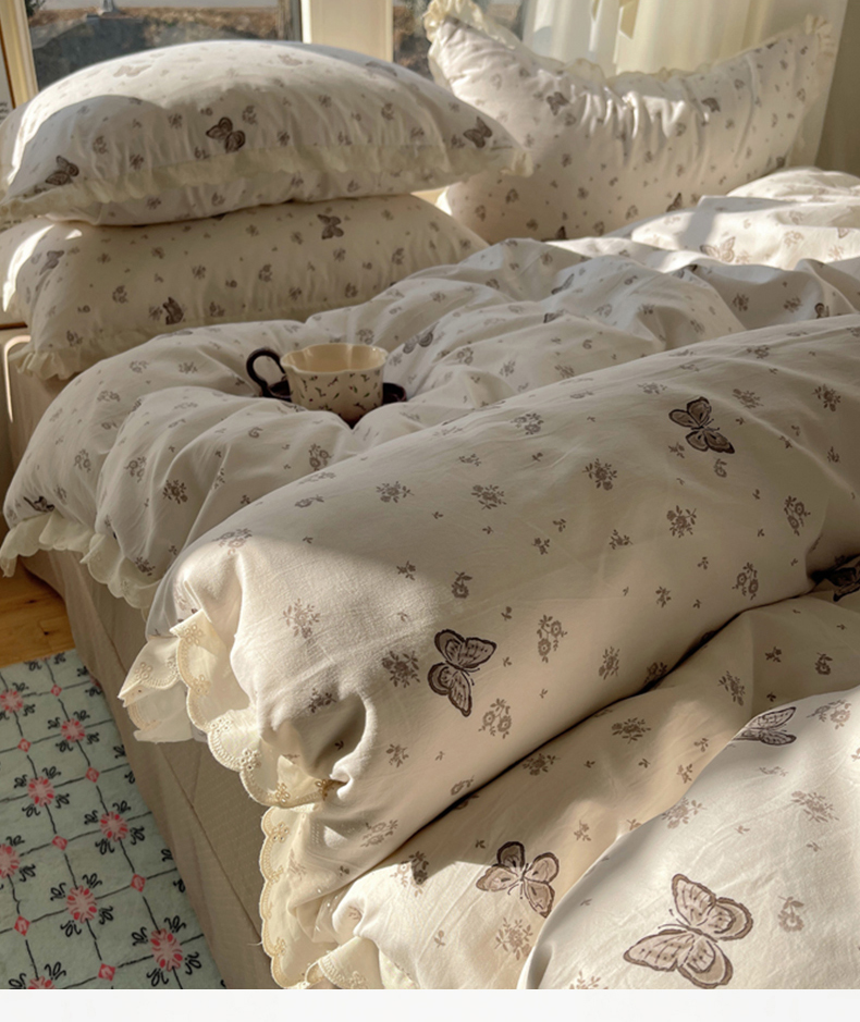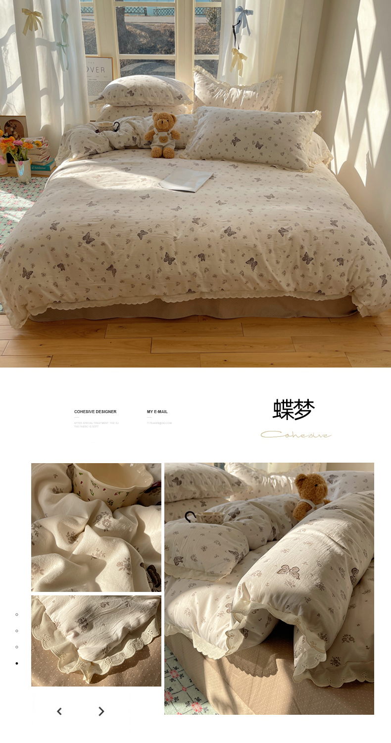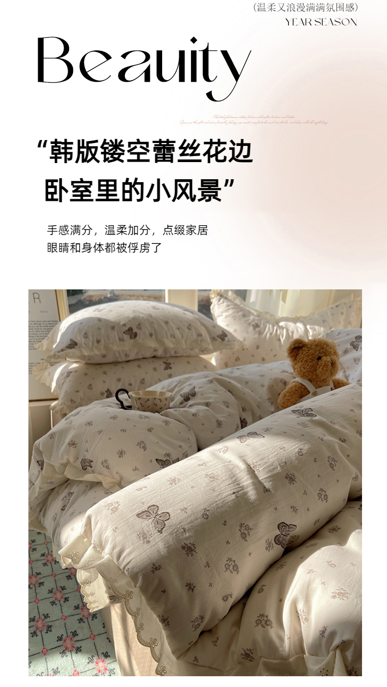 商品名称:十里居 2025春夏新款舒柔棉韩版蕾丝花边款四件套 蝶梦