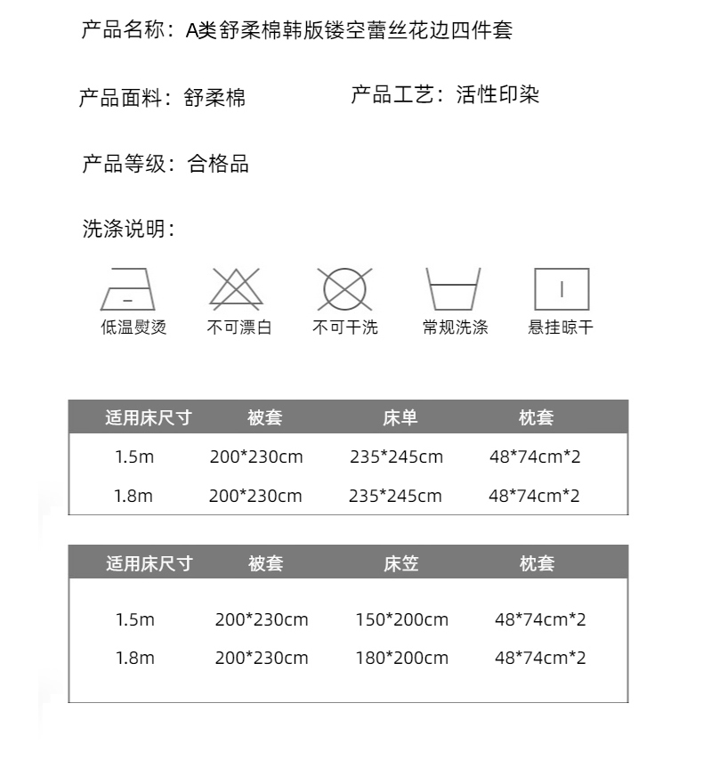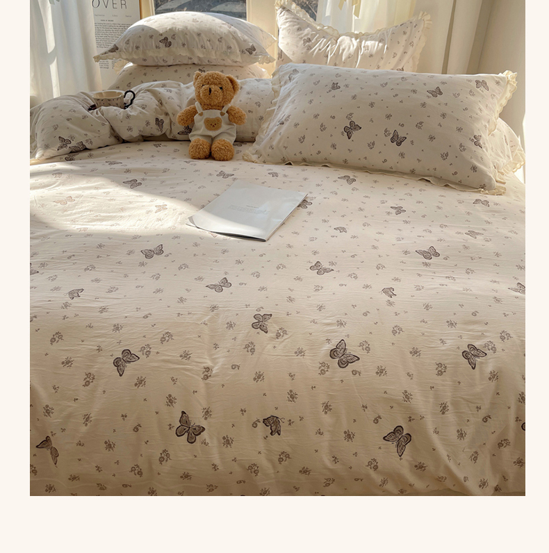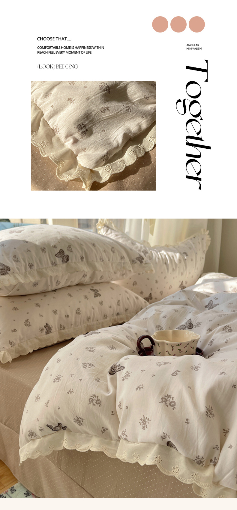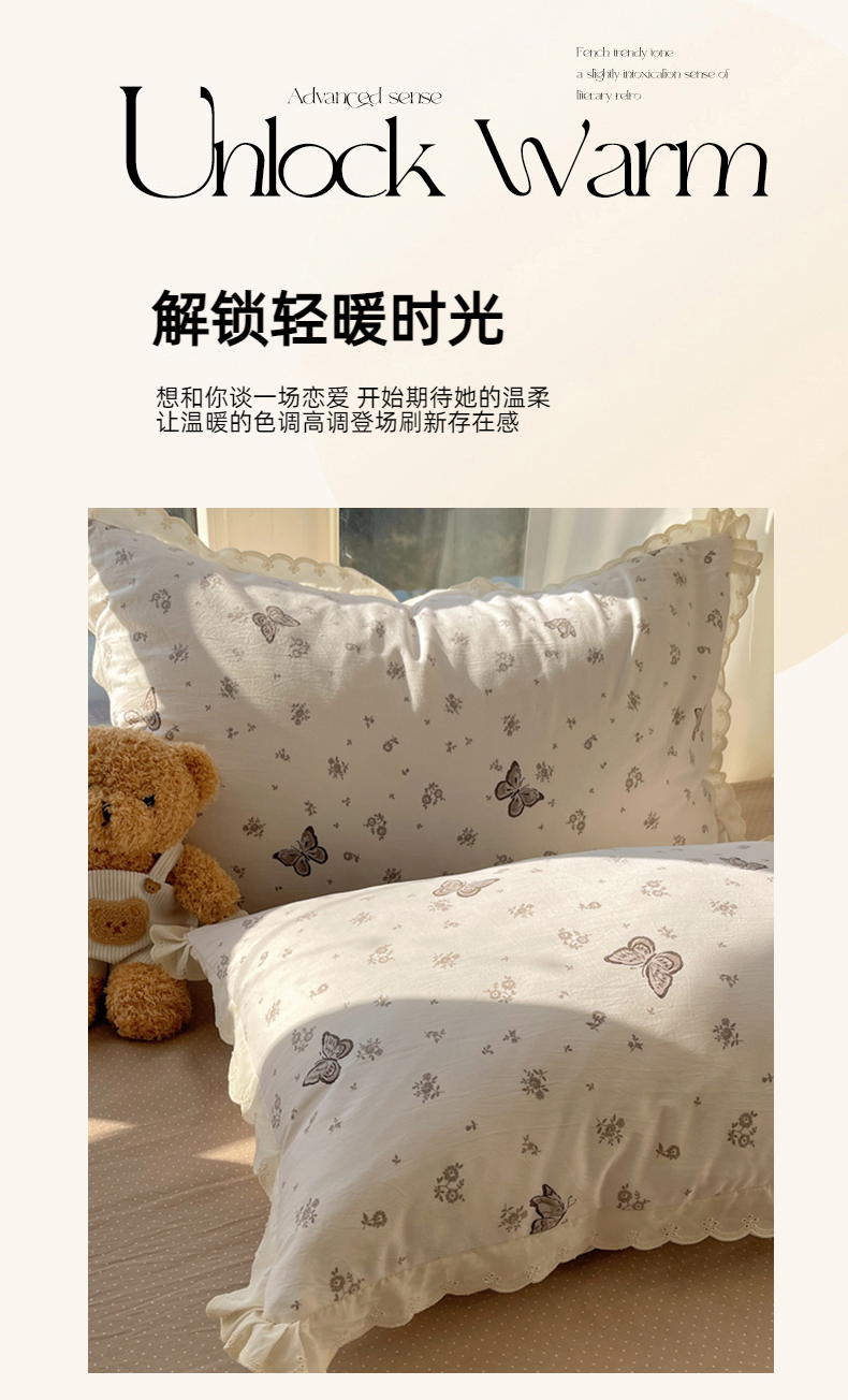 商品名称:十里居 2025春夏新款舒柔棉韩版蕾丝花边款四件套 蝶梦