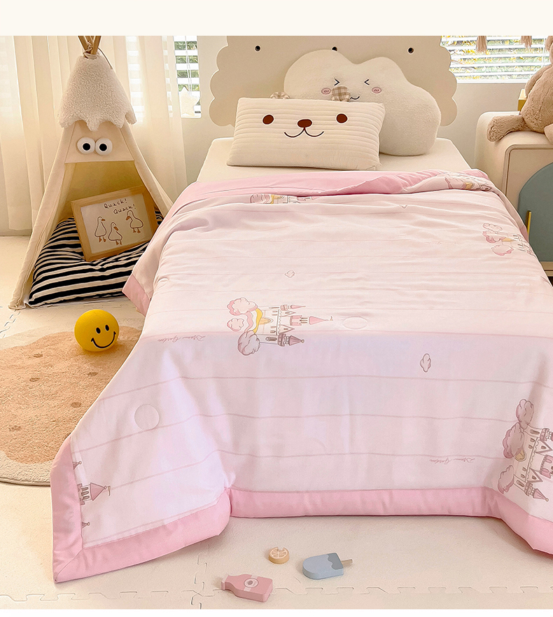 御棉坊 2025年新款A类莫代尔印花儿童夏被 魔法城堡粉