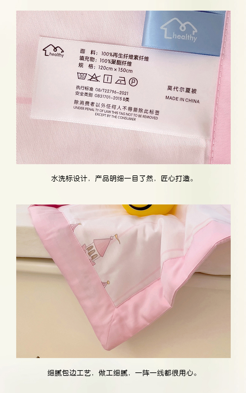 商品名称:御棉坊 2025年新款A类莫代尔印花儿童夏被 魔法城堡粉