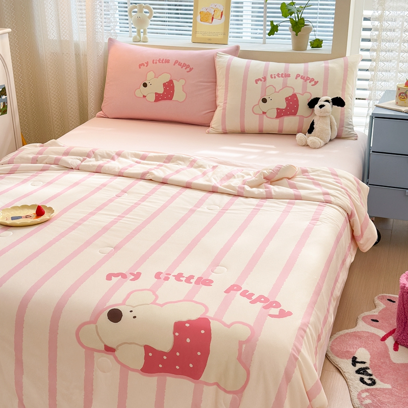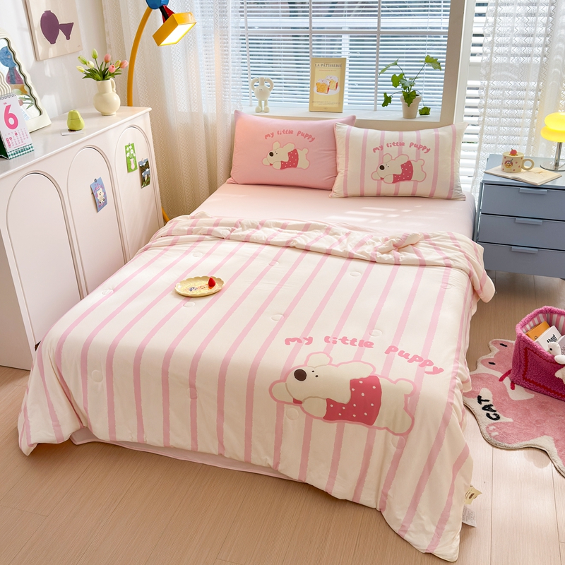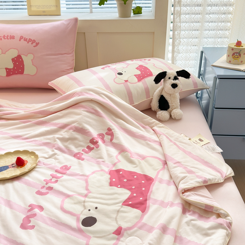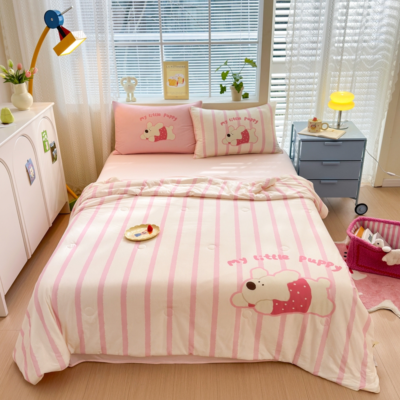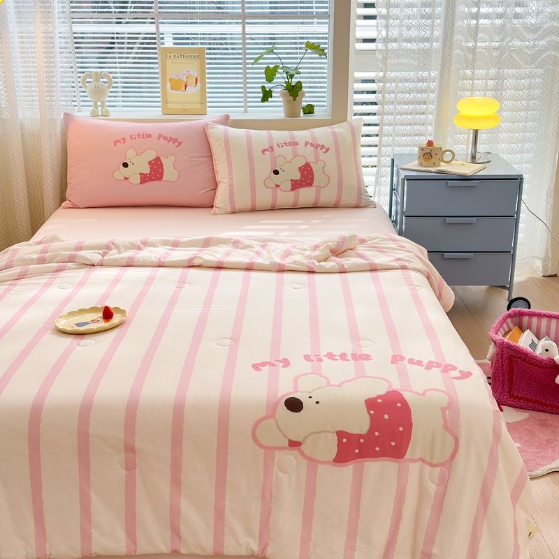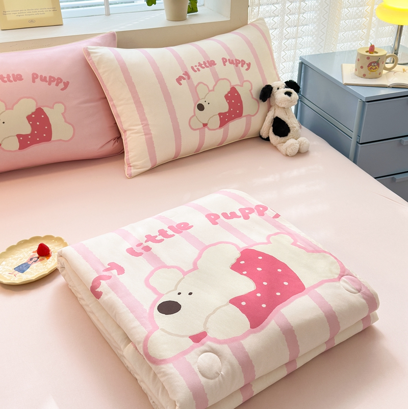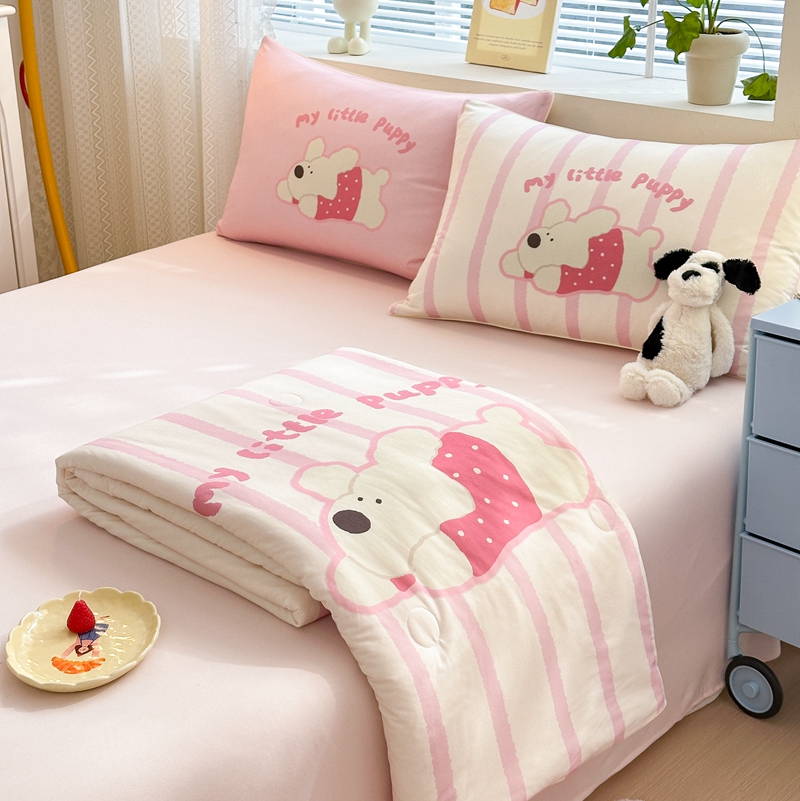 星期八 2025新款针织棉夏被四件套 竖条狗狗粉
