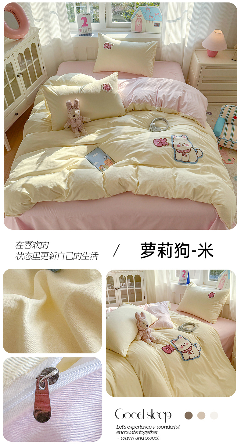 商品名称:温眠家纺 2025新款水洗棉毛巾绣四件套 萝莉狗-米