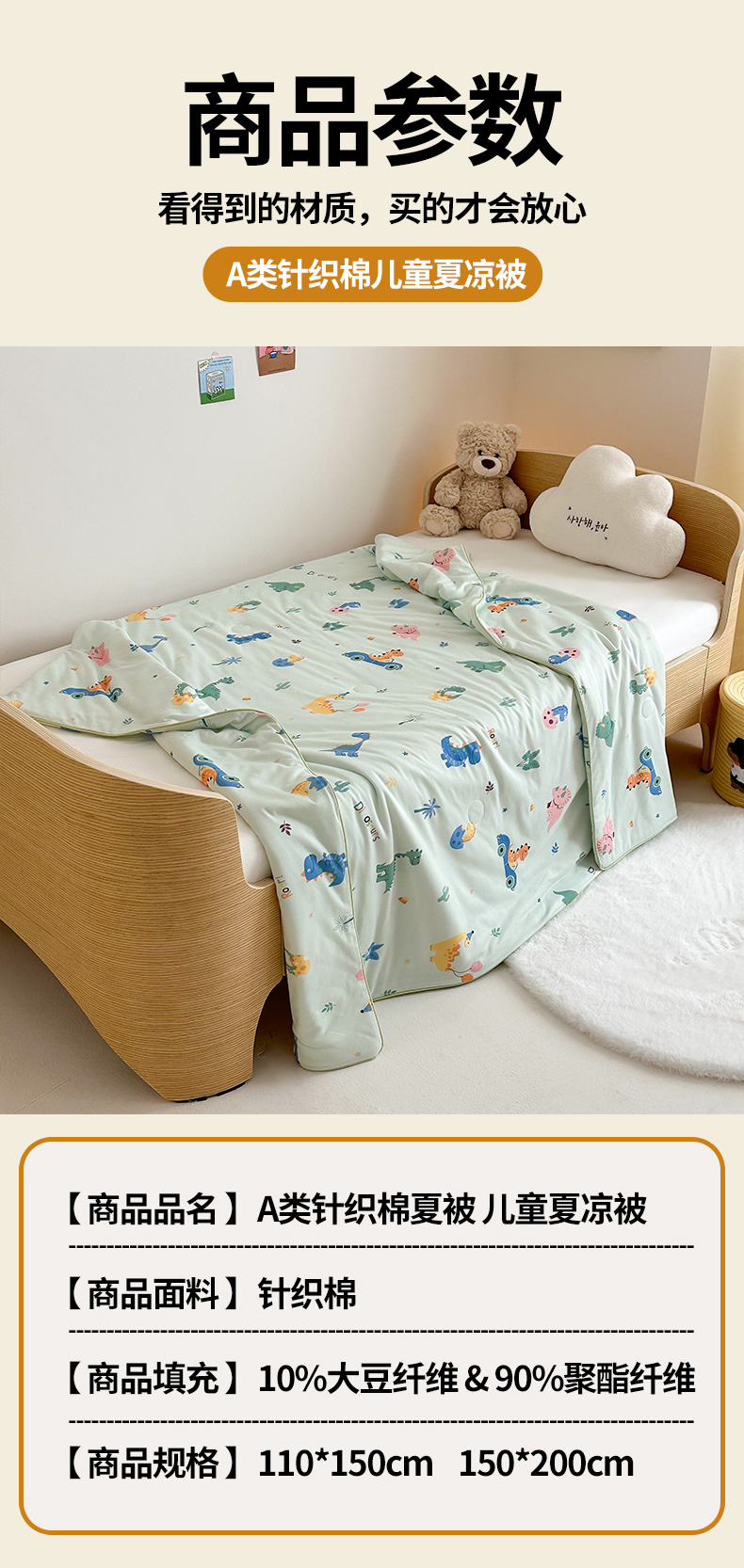 商品名称:嗨生活 2025年新款针织棉夏被 儿童夏被 幼儿园夏凉被 七彩恐龙